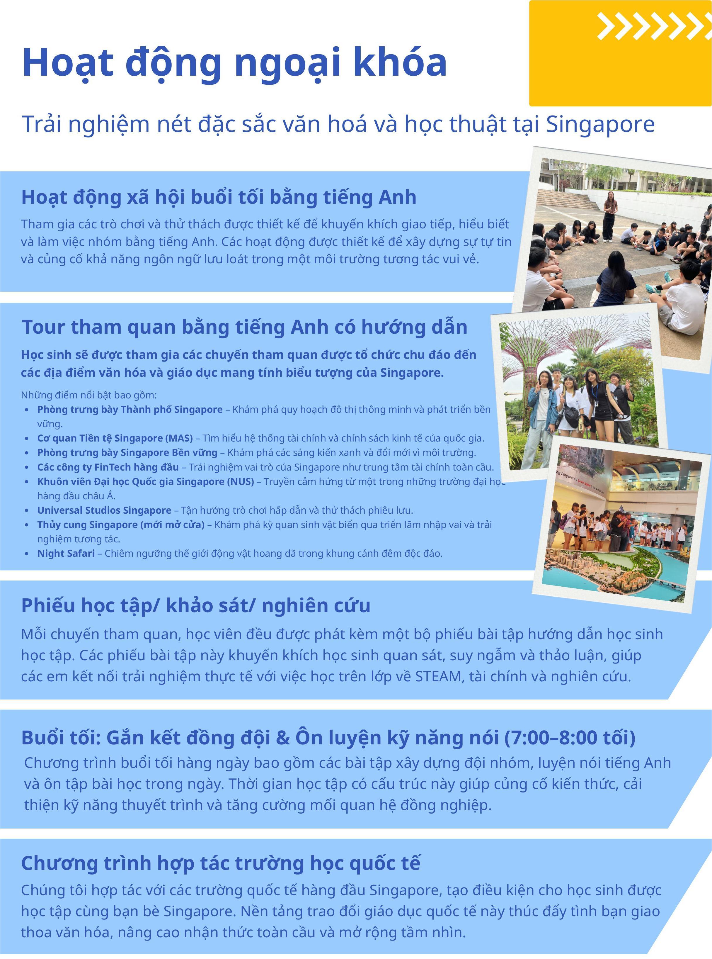 Trải nghiệm học tập tại MAS (Ngân hàng Trung ương Singapore) và Đại học Quốc gia Singapore (NUS) – top 8 toàn cầu.