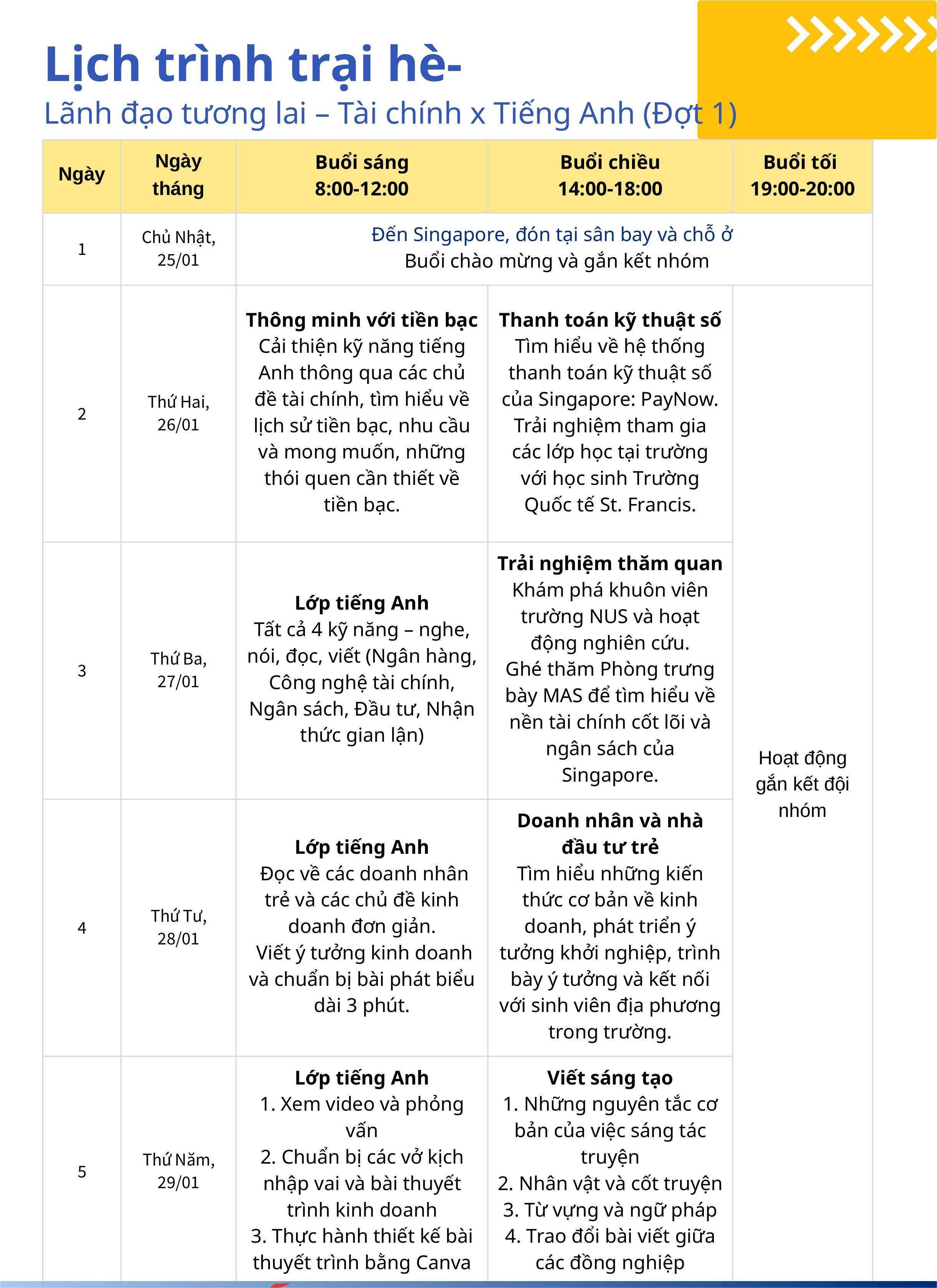 🏦 Đợt 1: Trại Tài Chính – Dẫn đầu với kiến thức tài chính toàn cầu