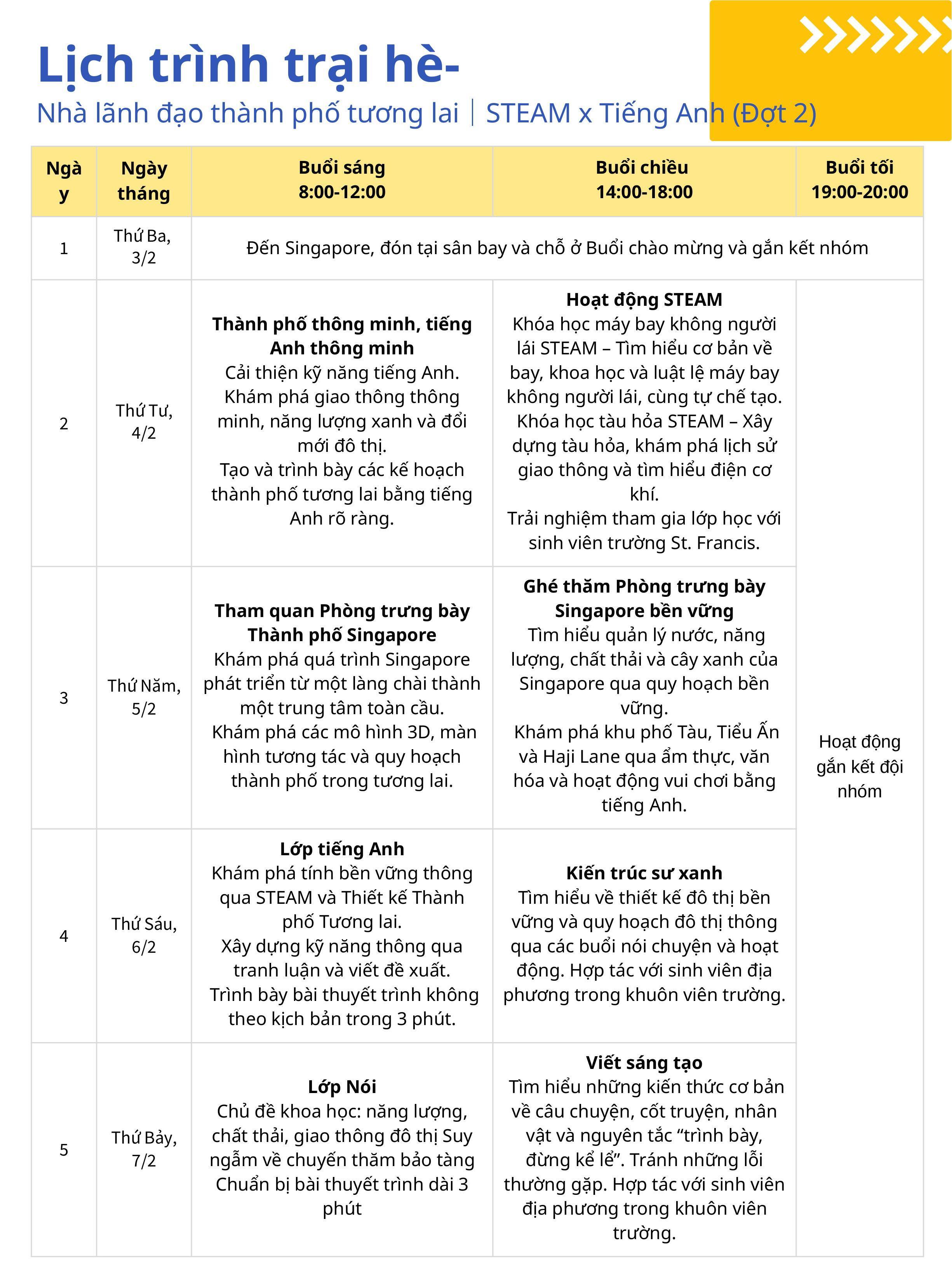 Hợp tác cùng học sinh Singapore, xây dựng thành phố thông minh, giải quyết vấn đề phát triển bền vững, thuyết trình ý tưởng chuyên nghiệp.