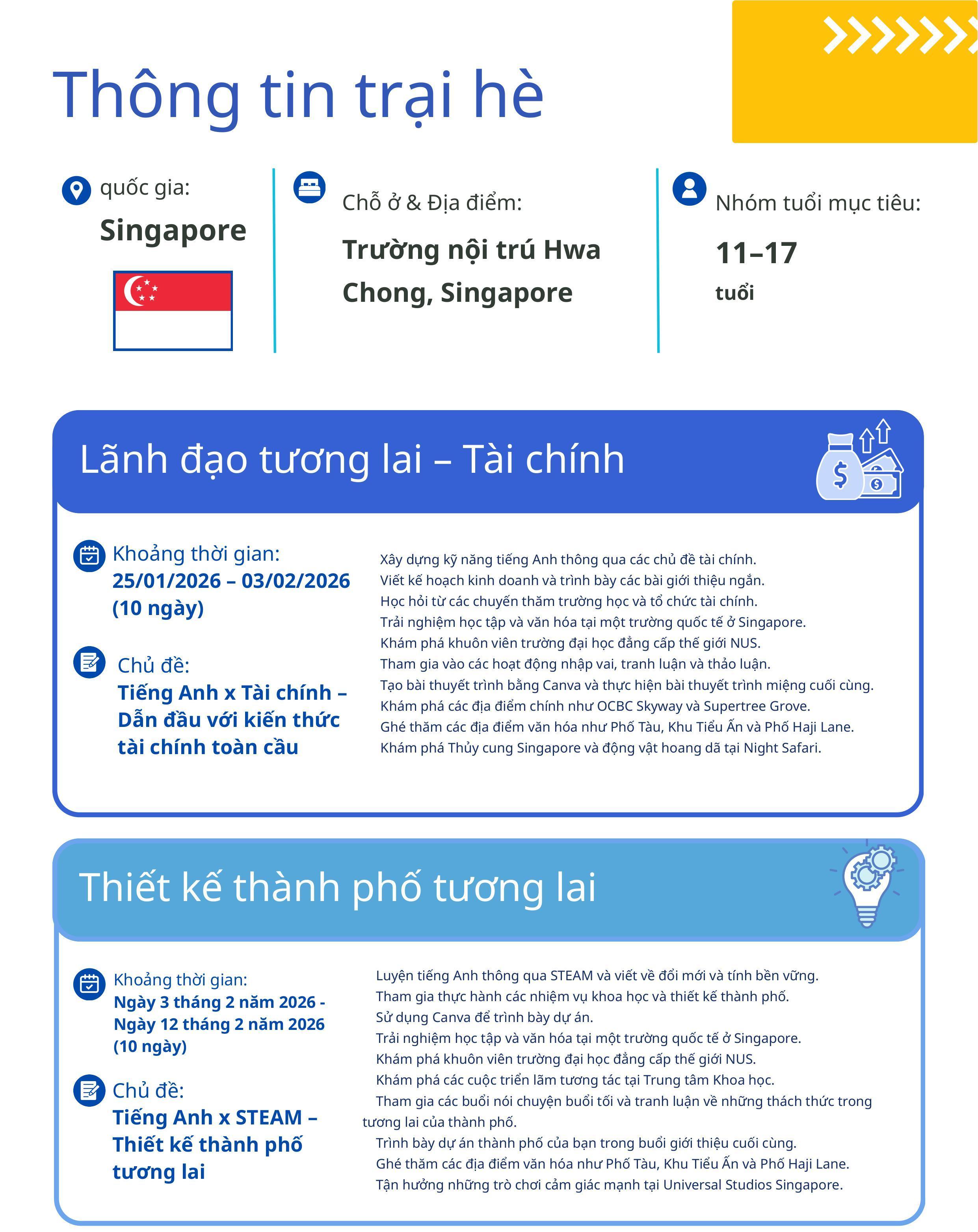 TỔNG QUAN CHƯƠNG TRÌNH TRẠI XUÂN VÀ TRẠI HÈ ANH NGỮ TẠI PHILIPPINES/ SINGAPORE | ||