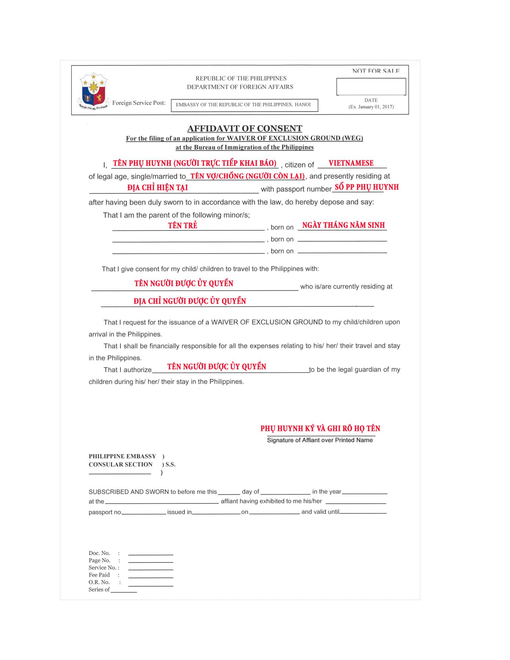 Tại văn phòng Lãnh sự quán Philippines, bạn được yêu cầu điền vào mẫu đơn Ủy quyền giám hộ. Chi tiết điền mẫu đơn này như sau: