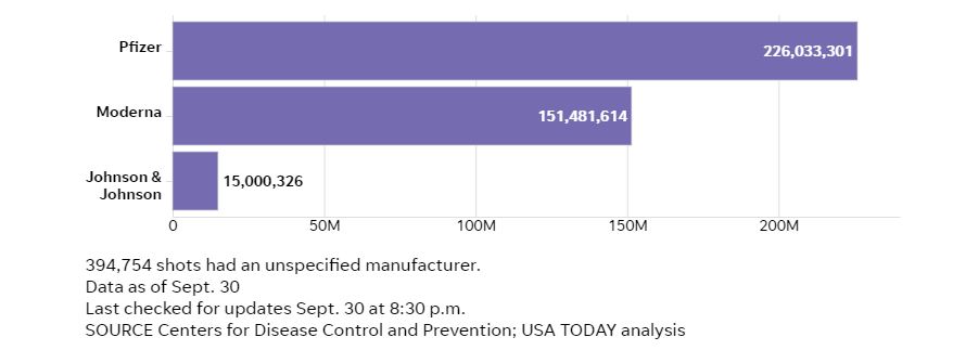 Số lượng mũi vaccine đã được cung cấp bởi mỗi nhà sản xuất Hoa Kỳ?