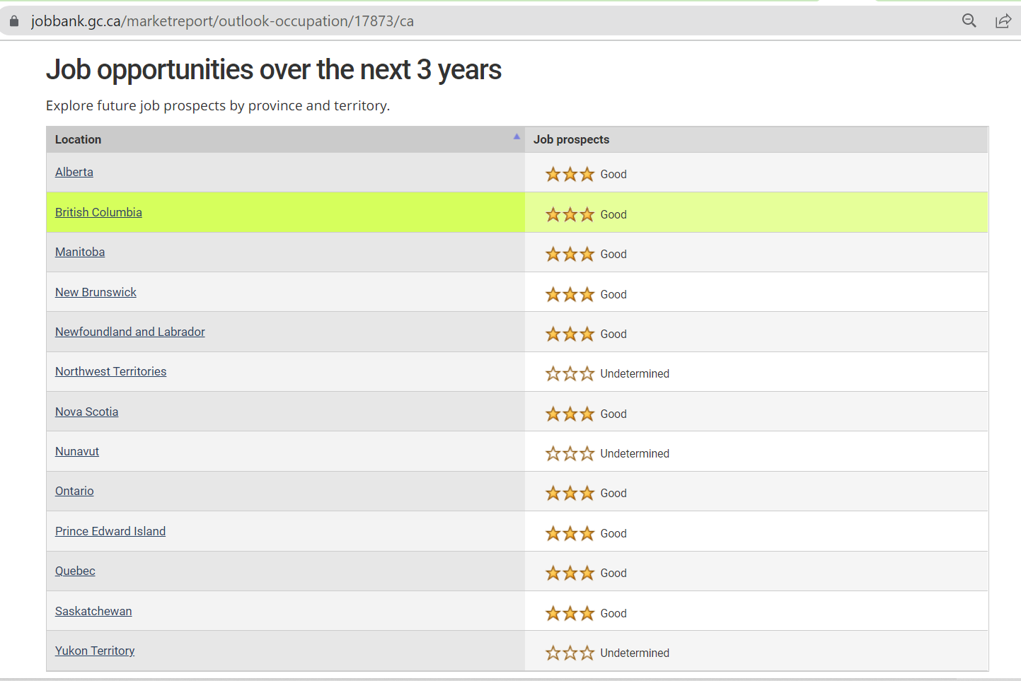 Canada sẽ cần khoảng 64.200 việc làm trong năm 2019 - 2028 từ lĩnh vực Computer Programmer ở hầu hết các tỉnh ở Canada. Mức lương sau khi tốt nghiệp cho lĩnh vực Khoa học Máy tính/công nghệ máy tính dao động từ 40.000CAD-60.000CAD/năm. Đây được xếp là nhóm ngành có mức lương cao thứ 8 tại Canada, theo CTV News.
