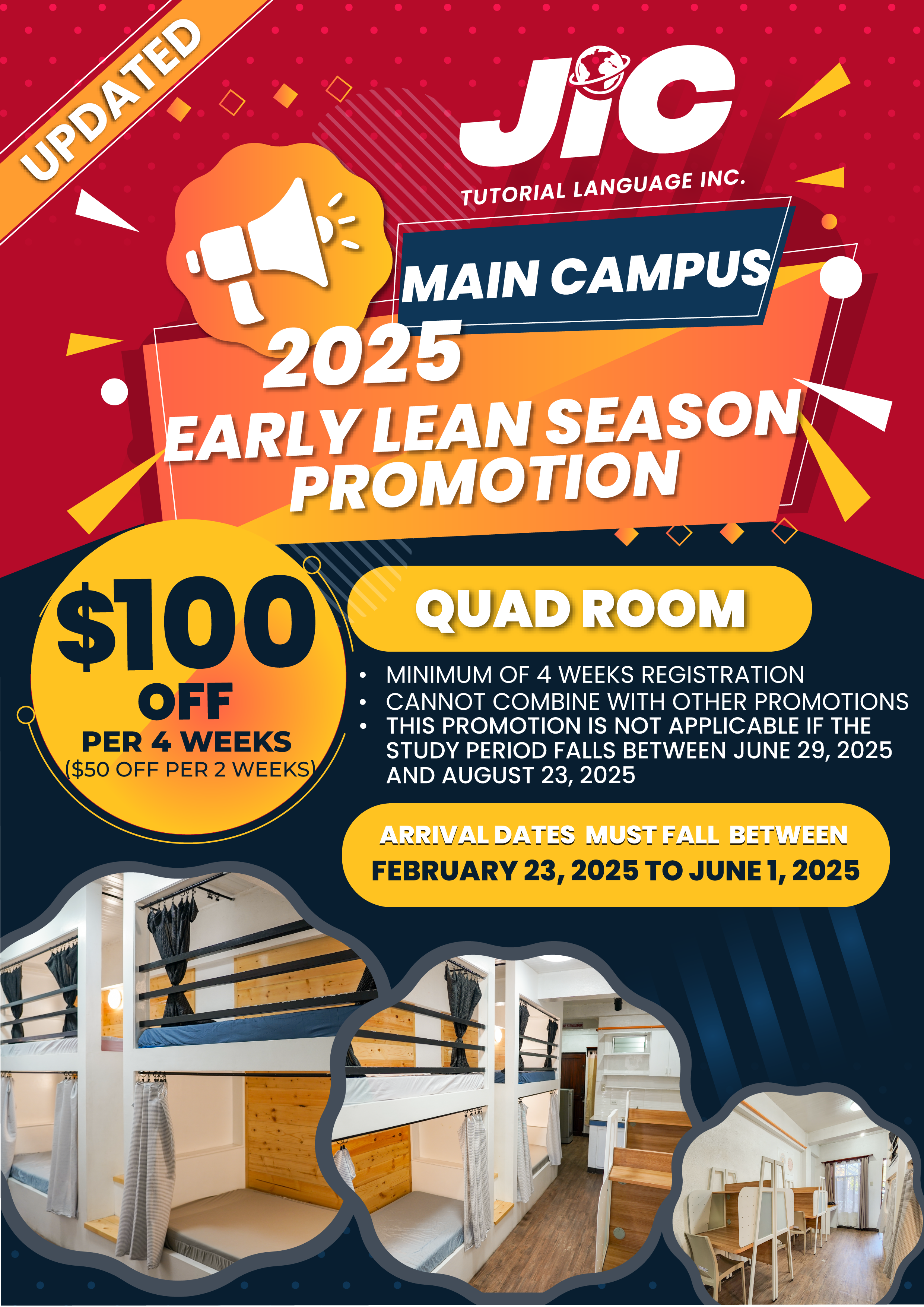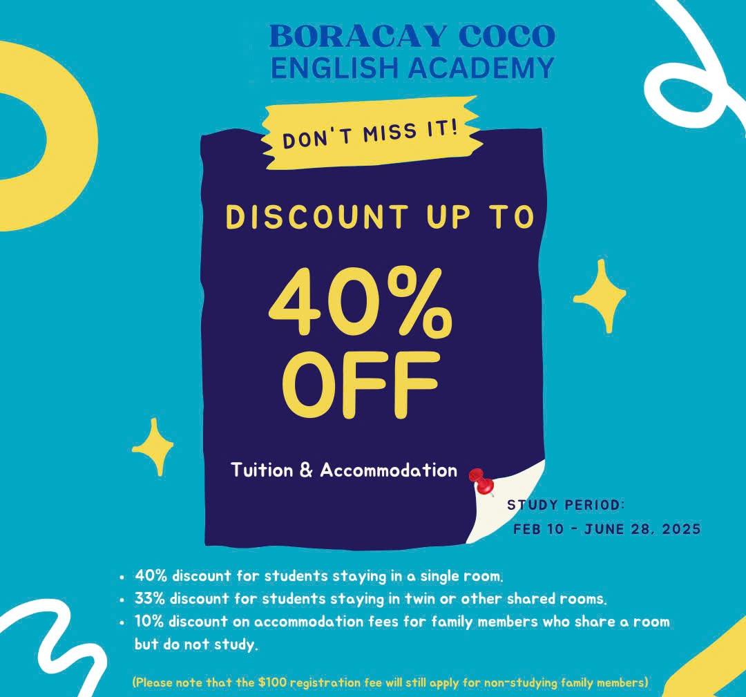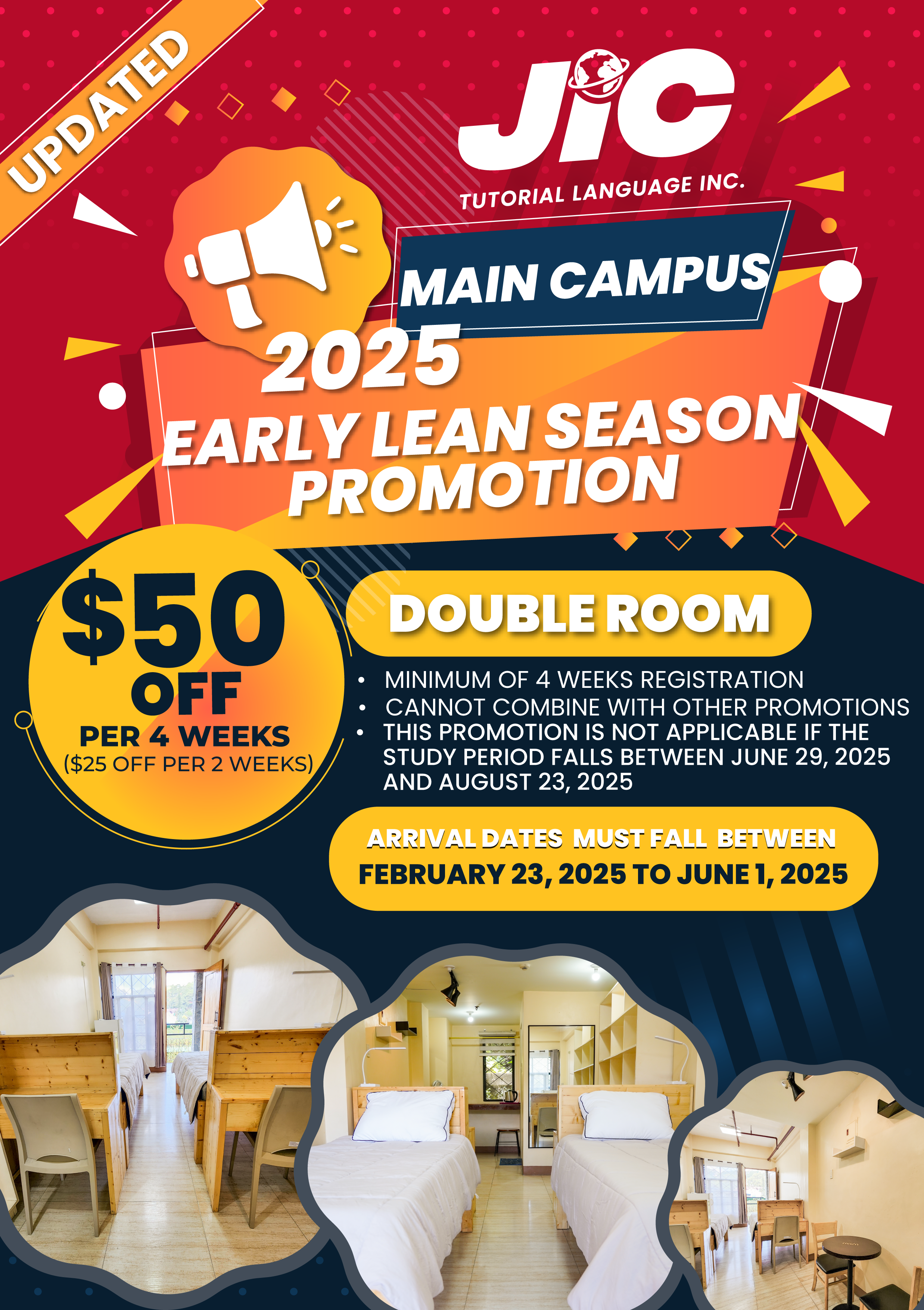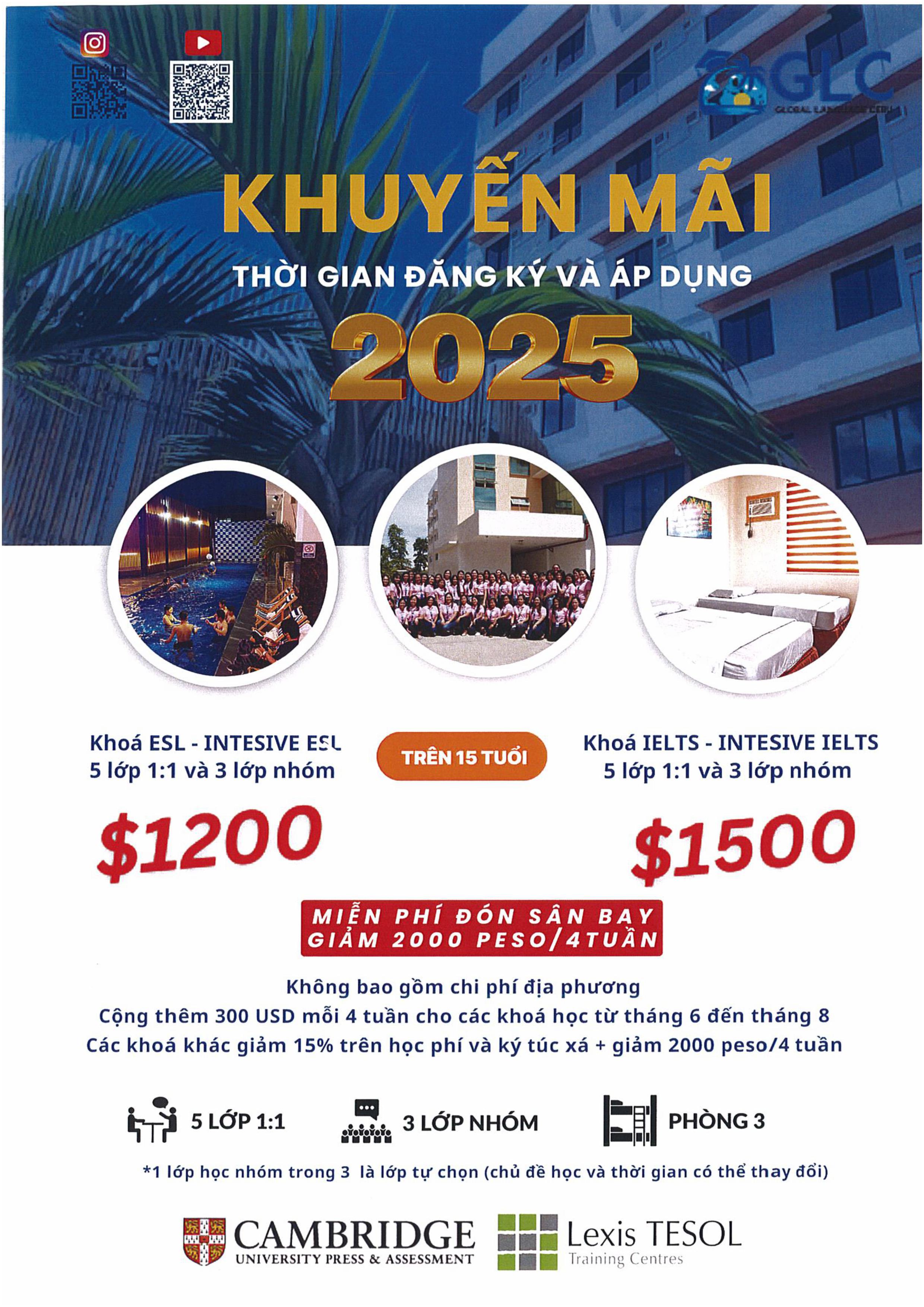 - Số chỗ có giới hạn. Vui lòng liên hệ trước Du học Philippines by DEOW để kiểm tra phòng trống