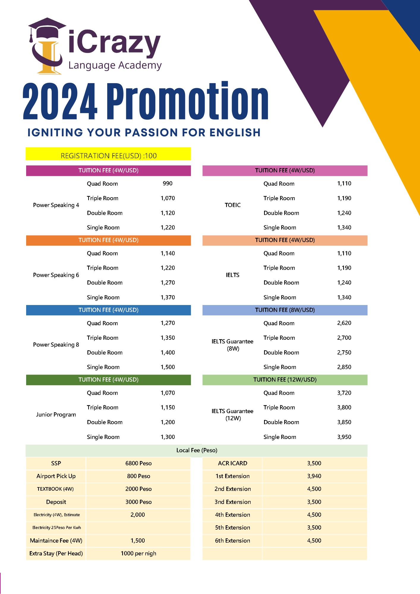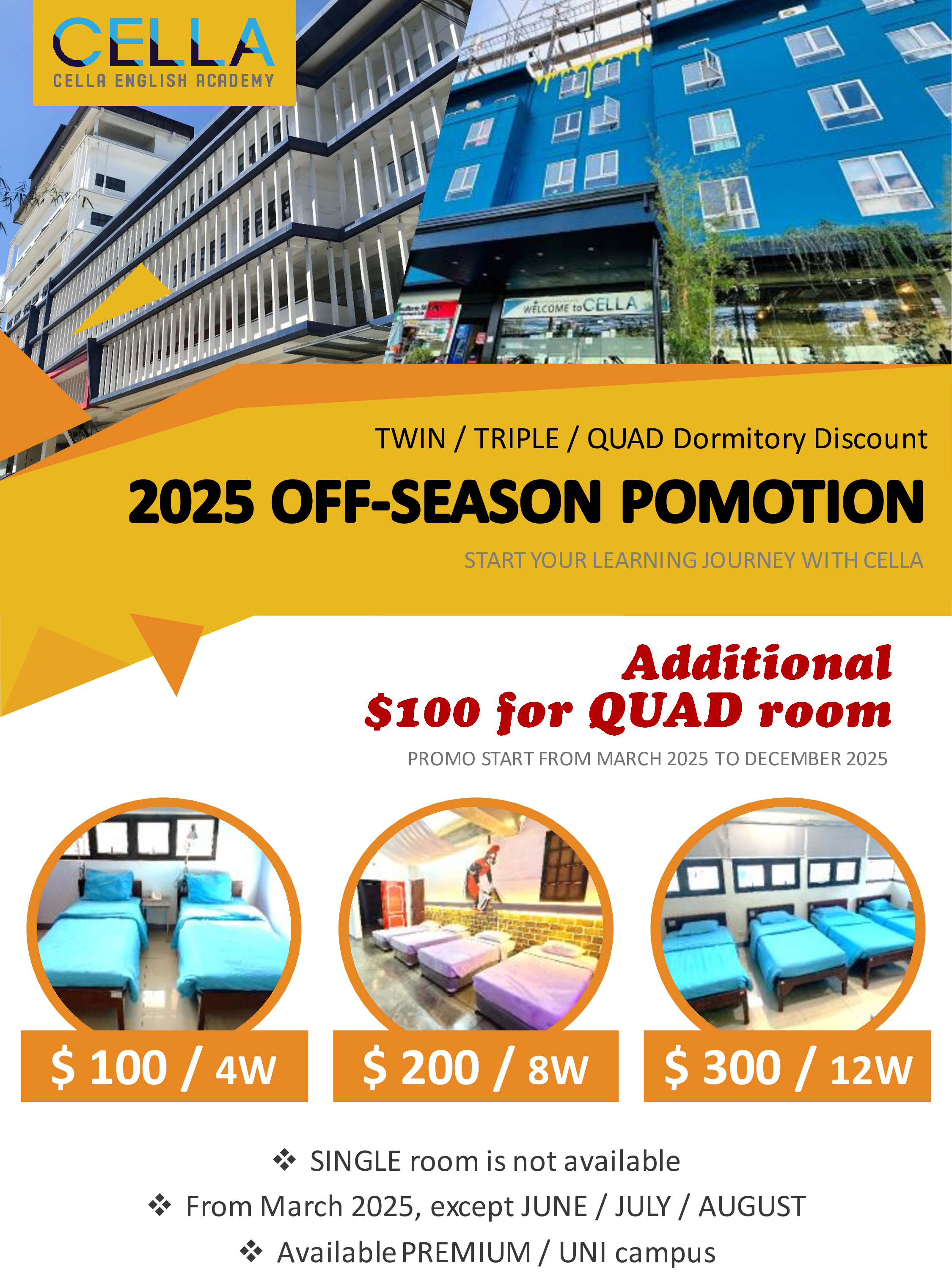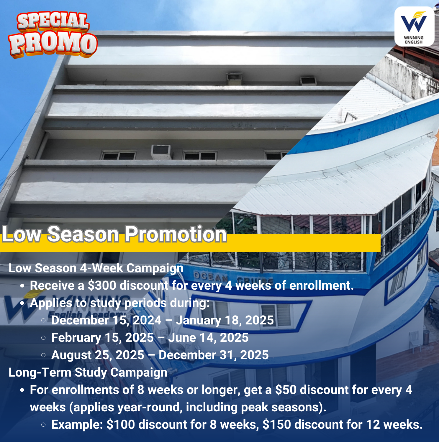 - Số chỗ có giới hạn. Vui lòng liên hệ trước Du học Philippines by DEOW để kiểm tra phòng trống