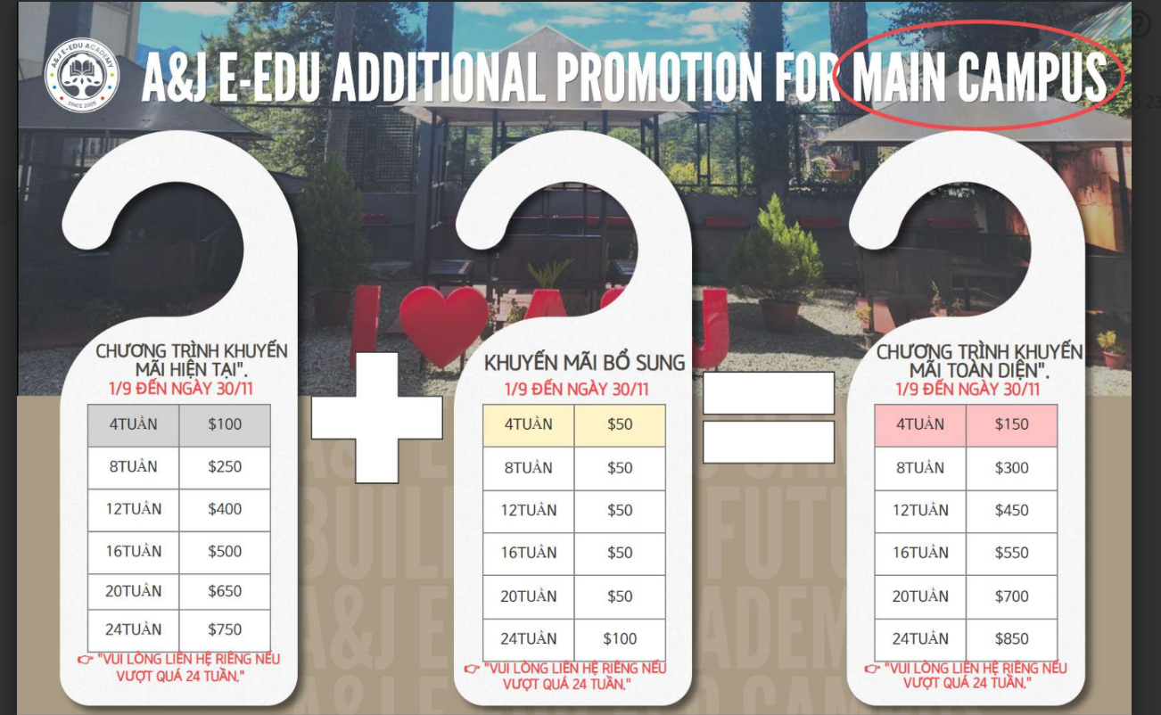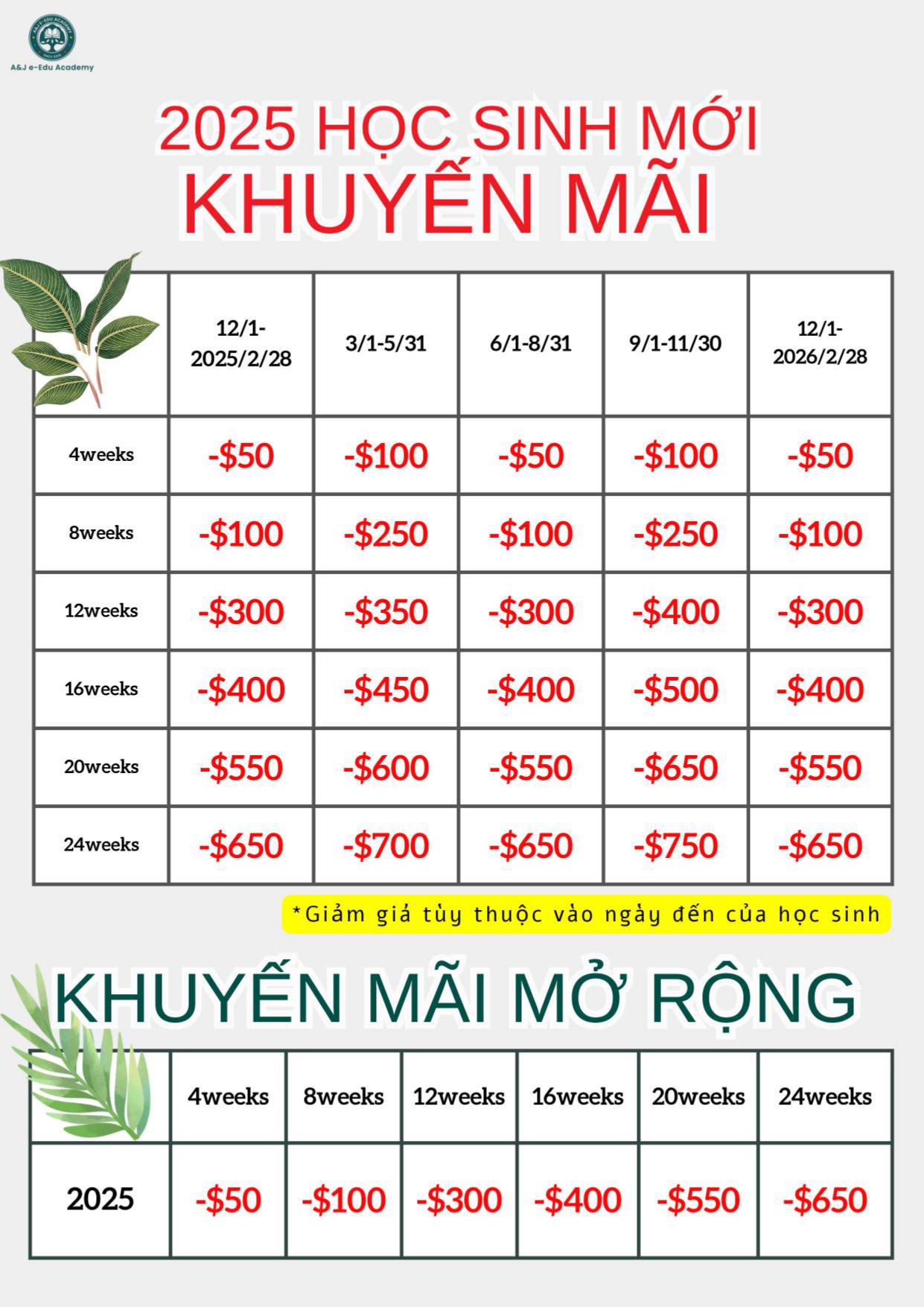 ♥️ Giảm $50 mỗi 4 tuần học (áp dụng cả mùa cao điểm)