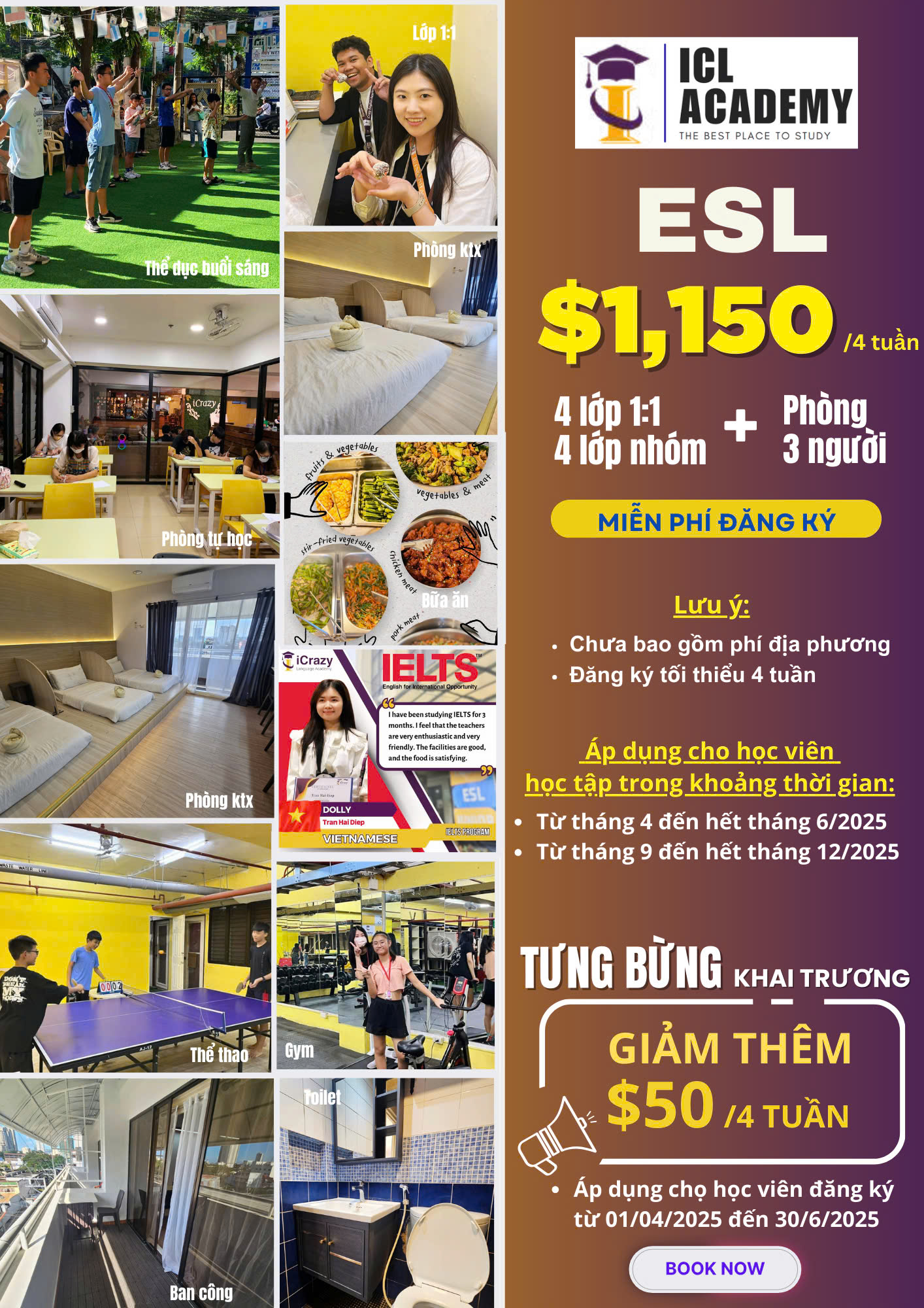 ♥️ Khóa ESL chỉ còn 1150$/ 4 tuần ♥️