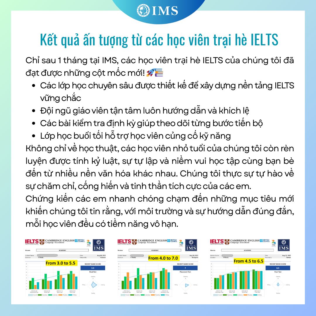 Tại IMS, mỗi cuộc thi không chỉ đơn thuần là để giành chiến thẳng. Đó còn là cơ hội để bạn thử thách bản thân, bày tỏ ý tưởng, và nhìn thấy sự tiến bộ của mình trong tiếng Anh. Bạn có muốn trở thành người tiếp theo giành được 100$, và quan trọng hơn là chứng kiến sự tiến bộ thật sự trong tiếng Anh của mình không?