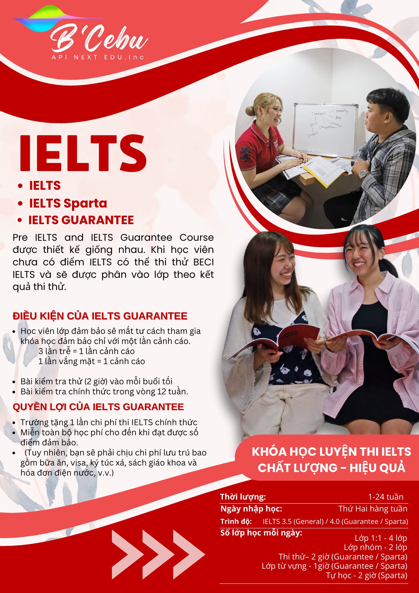 ==> Từ việc hòa nhập ngôn ngữ chuyên sâu của B'Sparta đến các kỹ năng tiếng Anh cơ bản của LITE ESL 4 và chương trình luyện thi IELTS nghiêm ngặt, B'CEBU cung cấp các khóa học toàn diện để đạt được thành tích học tập xuất sắc.
