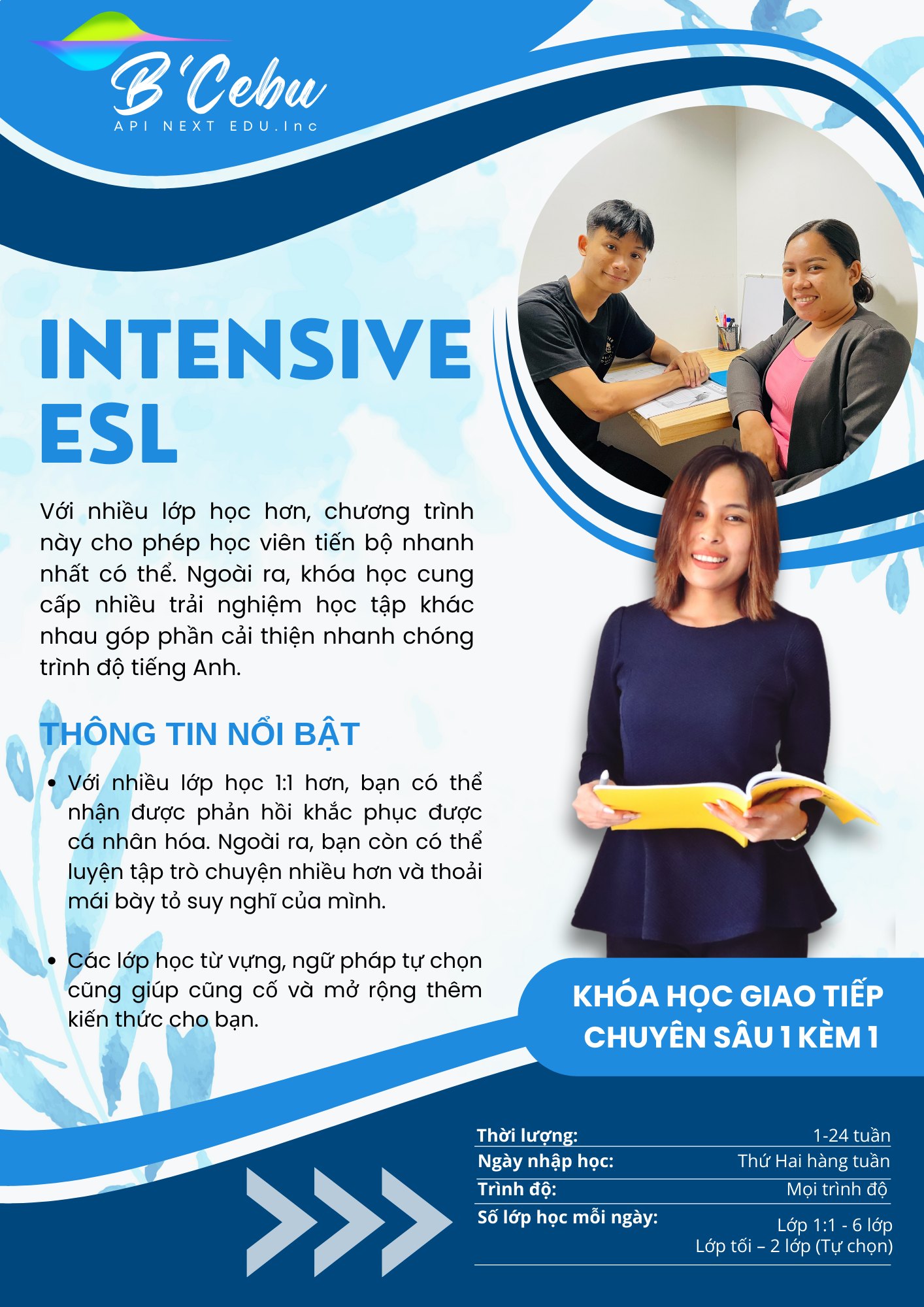 3. INTENSIVE ESL - Dành cho học viên muốn học chuyên sâu các lớp 1 kèm 1