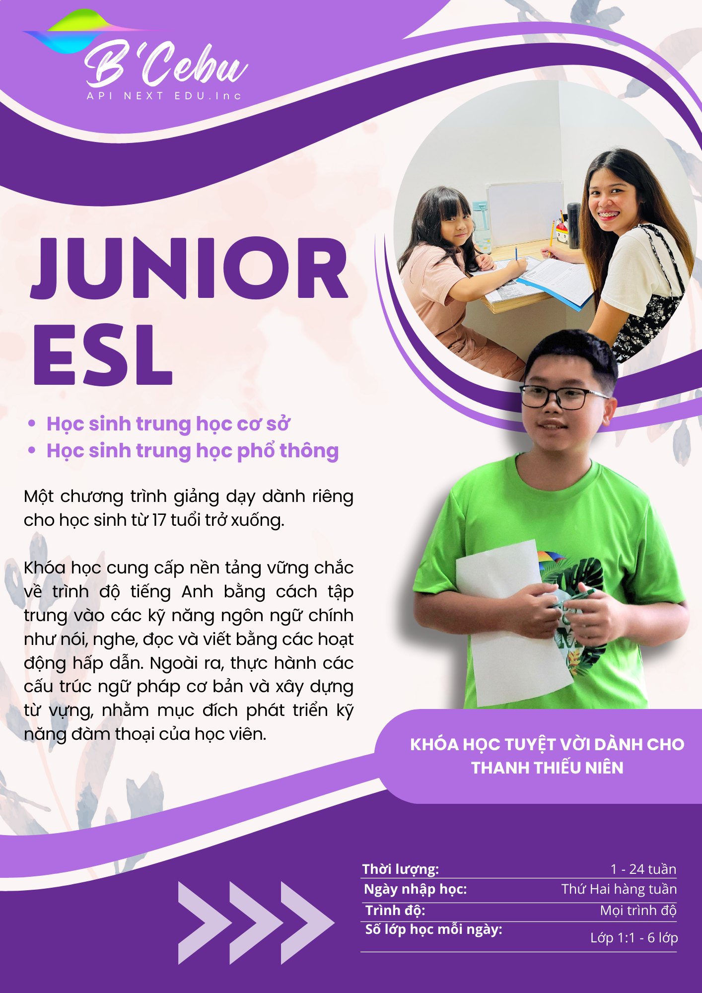 4. JUNIOR ESL - Dành cho học sinh trung học cơ sở, trung học phổ thông