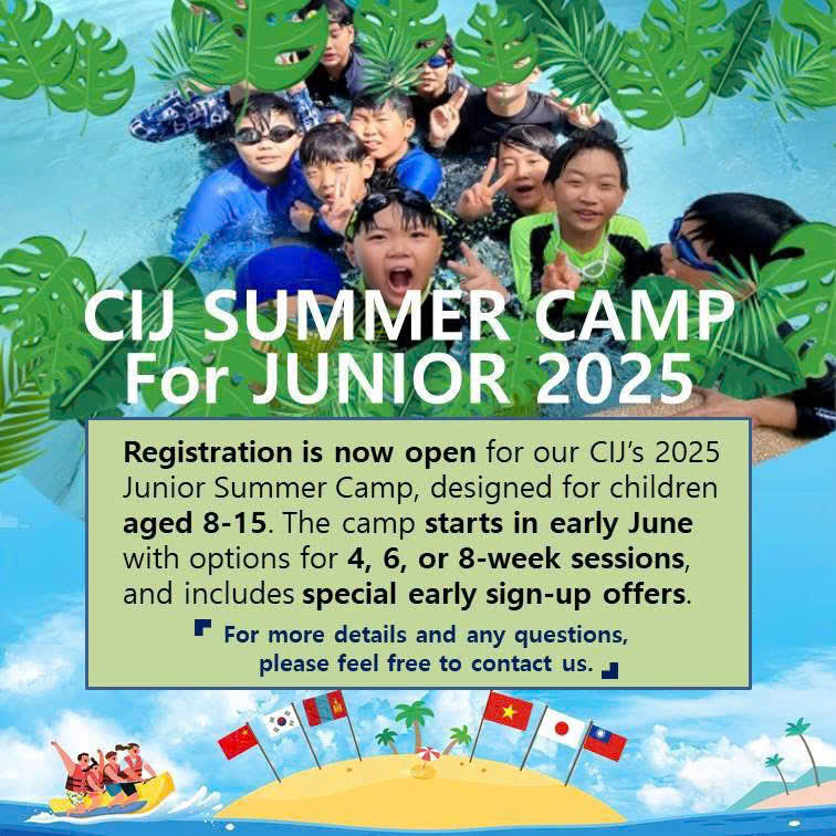 📢Hiện tại, Trại Hè CIJ Junior 2025 đã mở đăng kí, dành cho các em từ 8 đến 15 tuổi. Trại hè bắt đầu vào tháng 6, với các khóa học kéo dài 4,6 hoặc 8 tuần, kèm theo những ưu đãi khi đăng kí sớm.