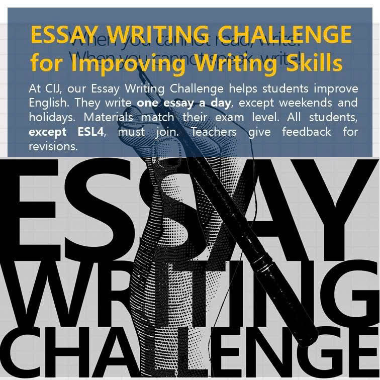 🖋 Ngoài ra, CIJ còn có thử thách viết bài luận để cải thiện kỹ năng viết tiếng Anh. Họ viết 1 bài luận mỗi ngày, trừ cuối tuần và ngày lễ. Tài liệu phù hợp với trình độ thi của mỗi sinh viên. Tất cả các sinh viên, ngoại trừ ESL4, phải tham gia. Giáo viên sẽ đưa ra các phản hồi để chỉnh sửa cho bài viết.