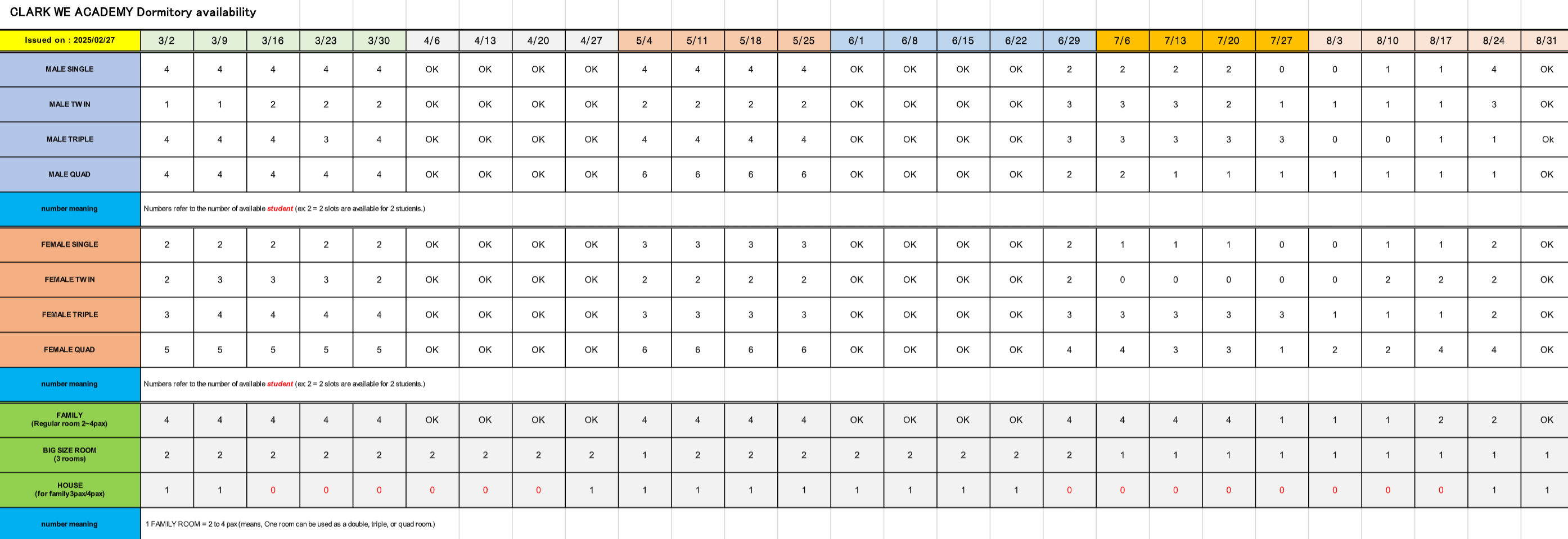 "CẬP NHẬT TÌNH TRẠNG PHÒNG TRỐNG TẠI WE ACADEMY CLARK" (03/2025)