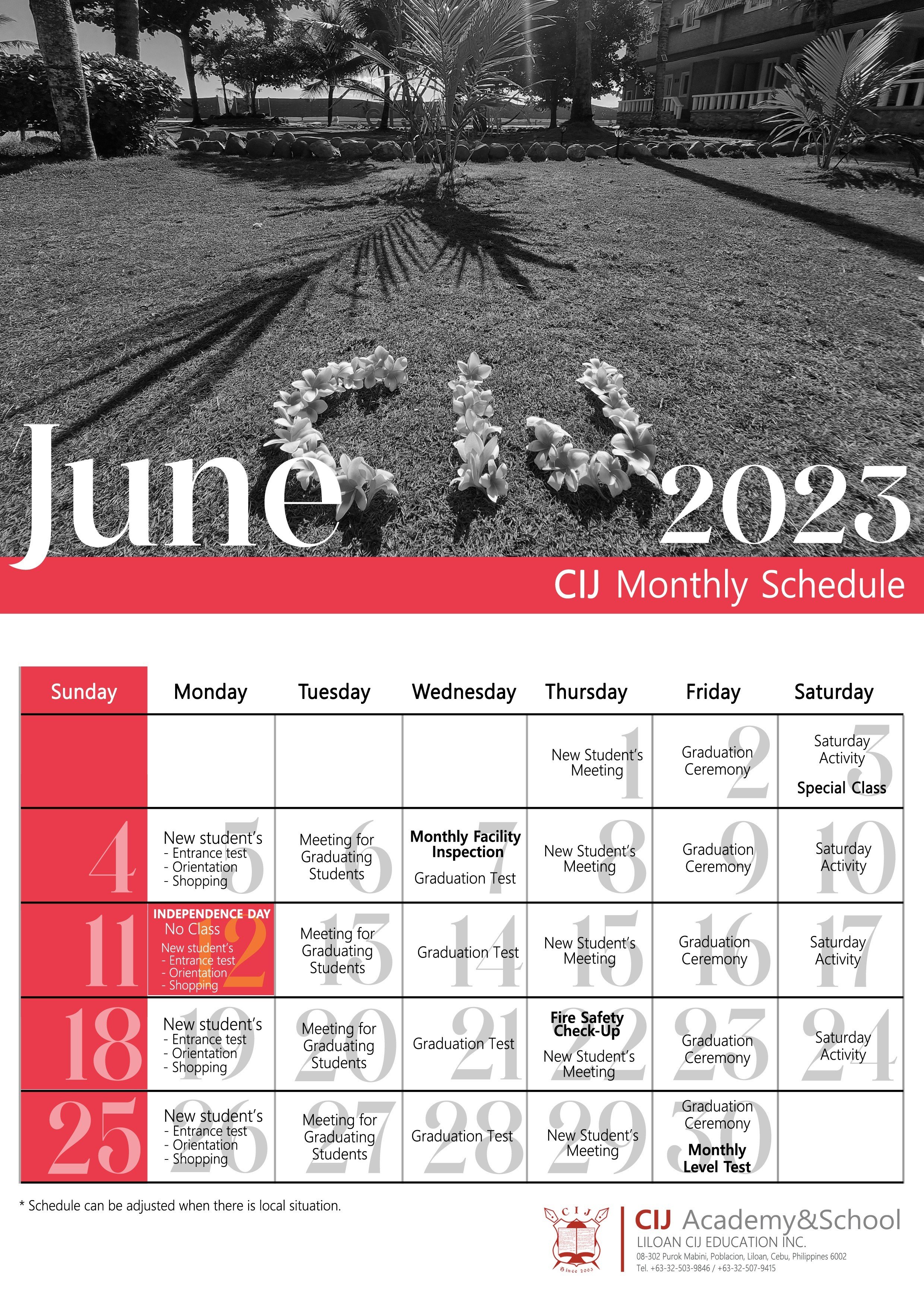 Ngoài ra, dưới đây đính kèm lịch học tháng 6 của CIJ Academy & School để các bạn tham khảo thêm. Nó sẽ cung cấp cho học viên một cái nhìn tổng quan về các hoạt động và sự kiện đã được lên kế hoạch cho tháng này.