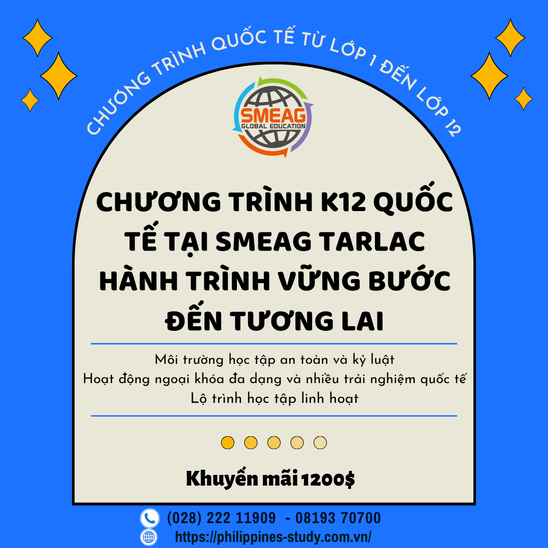 Không chỉ đơn thuần sang nước ngoài học kiến thức, du học phổ thông còn giúp học sinh phát triển toàn diện về ngôn ngữ, kỹ năng sống và tư duy toàn cầu trong thời đại phát triển hiện nay. Một trong số những lựa chọn nổi bật, chương trình K12 quốc tế tại SMEAG Global School tại Tarlac đang dần khẳng định vị thế nhờ chất lượng đào tạo và môi trường học tập an toàn, kỷ luật cao.