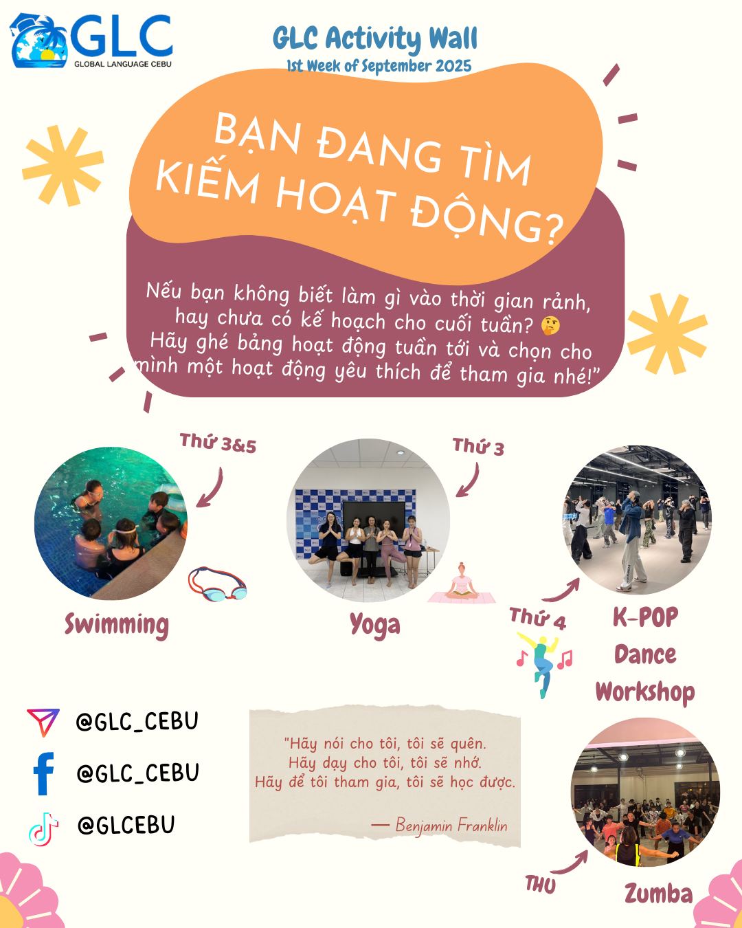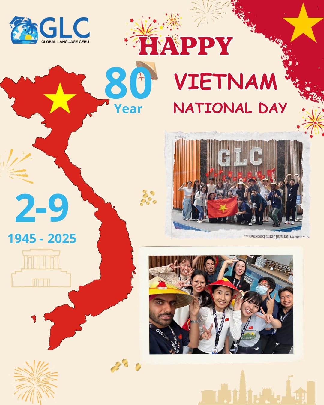 Tại Cebu – Philippines, trong môi trường học tập quốc tế sôi động của GLC, các học viên đến từ nhiều quốc gia đã cùng nhau chia sẻ niềm vui, giao lưu văn hóa và lan tỏa tinh thần gắn kết. Đặc biệt, năm nay mang một ý nghĩa vô cùng thiêng liêng đối với Việt Nam khi toàn dân tộc hân hoan kỷ niệm 80 năm Quốc khánh (2/9/1945 – 2/9/2025). Đây không chỉ là ngày lễ lớn của đất nước mà còn là dịp để mỗi người Việt Nam, dù ở bất cứ nơi đâu, đều hướng lòng về Tổ quốc với niềm tự hào sâu sắc.