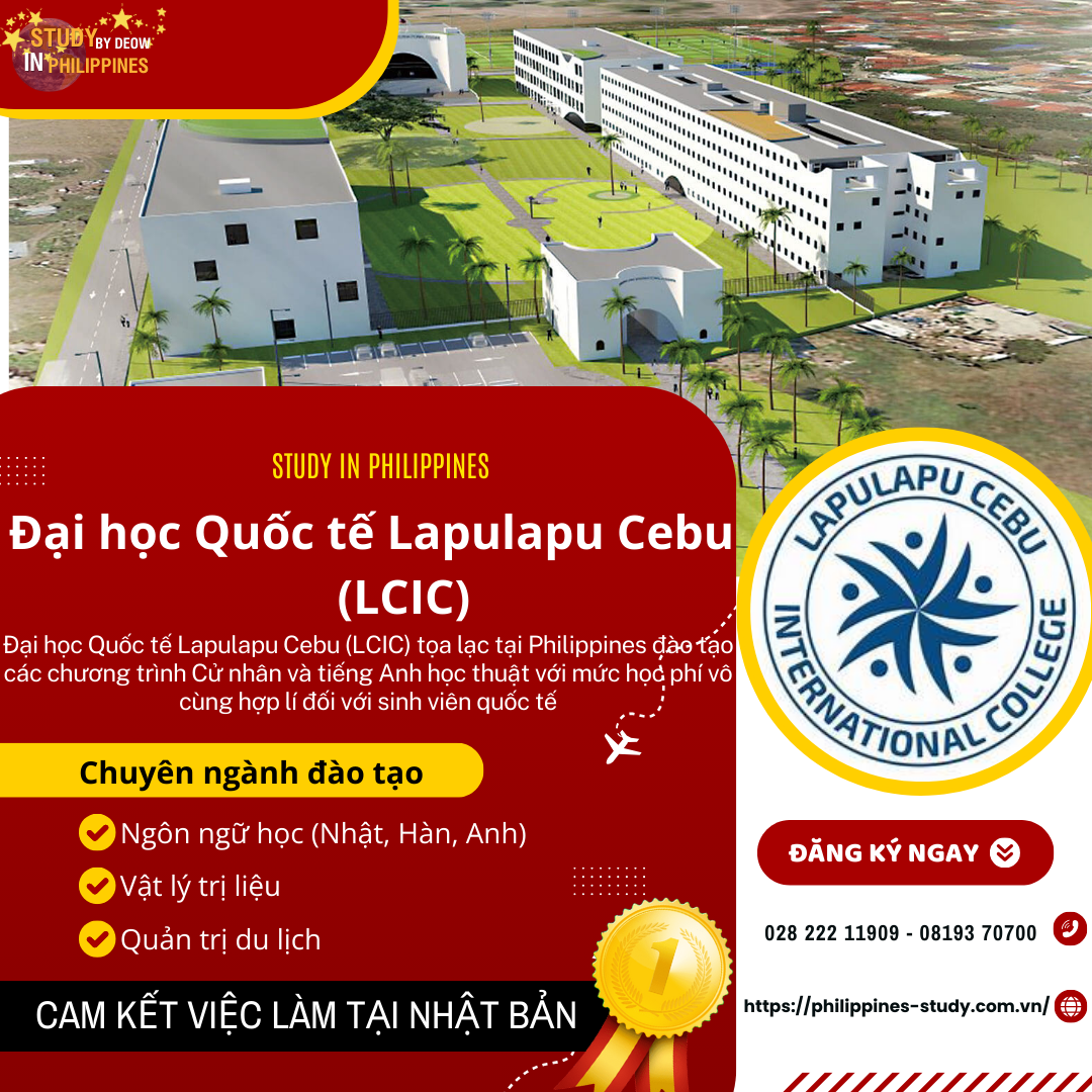 Trường Đại học Quốc tế LapuLapu Cebu International College (LCIC) là cơ sở giáo dục đại học quốc tế được Bộ Giáo dục Philippines cấp phép hoạt động. Trường được thành lập bởi các doanh nhân Philippines và một trường Đại học Hiroshima Bunkyo tại Nhật Bản. Giáo trình giảng dạy chất lượng cùng môi trường học tập chuẩn Nhật Bản cam kết mang lại cho sinh viên quốc tế trải nghiệm đáng nhớ nhất khi học tập tại Philippines.