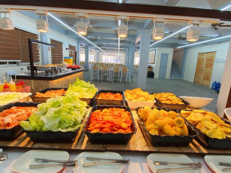 - Bữa tối: 20 món buffet đa dạng với 4 món chính, 20 món phụ, hoa quả và đồ uống.