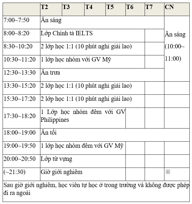 - Phòng tự học: Ngoài giờ học trên lớp, các phòng học 1:1 sẽ trống vào ban đêm và các ngày cuối tuần. Học viên được sử dụng thoải mái các phòng học này để tự học mà không giới hạn thời gian.