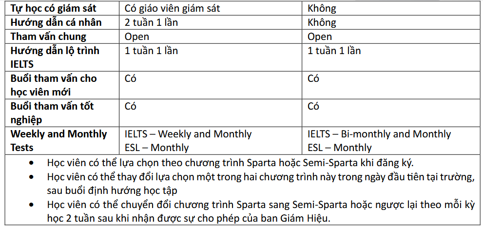 Bắt đầu từ ngày 22 tháng 10 năm 2024, chúng tôi sẽ ra mắt chương trình Semi-Sparta cho các khóa học ESL và IELTS, mang đến cho học viên nhiều lựa chọn linh hoạt hơn cùng với trải nghiệm học tập được thiết kế phù hợp hơn.