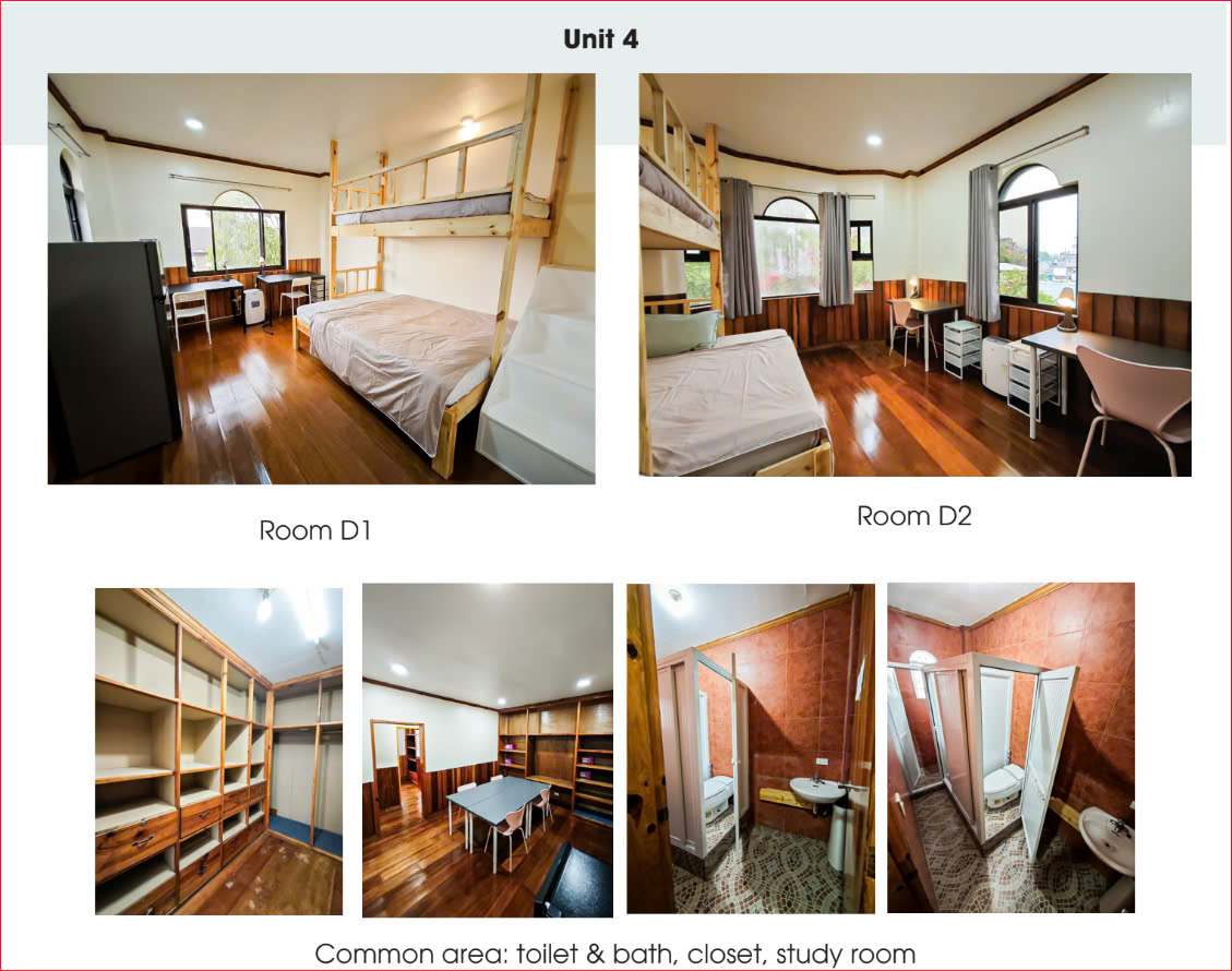 ④ Điểm nhấn: Cực kỳ rộng rãi (đặc biệt có khu chứa đồ riêng biệt), cấu trúc phòng đẹp, tiện nghi, sạch sẽ, yên tĩnh, thiết bị nội thất hiện đại, gần nhà bếp chung và khu giặt ủi rất tiện lợi.