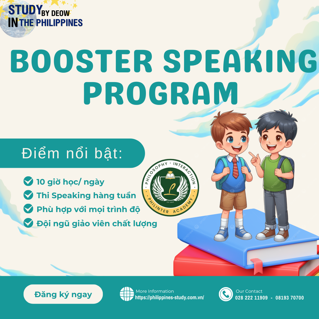 Trường Anh ngữ Philinter là một trong những ngôi trường danh tiếng tại Philippines với chất lượng đào tạo vượt bậc và cơ sở vật chất hiện đại. Trường chuyên đào tạo các khóa học đặc biệt nổi bật với khóa học IELTS. Năm 2026, Philinter ra mắt khóa học Booster Speaking nhằm hướng đến các học viên muốn nâng cao kỹ năng Nói tiếng Anh một cách nhanh chóng.