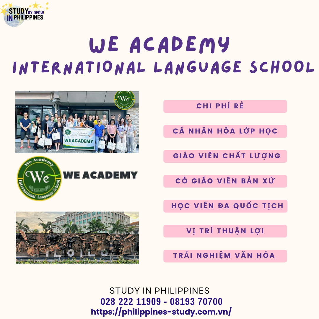 WE Academy International Language School còn gọi tắt là WE Academy, là một trong những trường Anh ngữ có uy tín hàng đầu tại thành phố Iloilo – Philippines. Trường thành lập với mong muốn mang lại môi trường học tập hiện đại, thân thiện và hiệu quả đến với học viên quốc tế. WE Academy đã trở thành điểm đến quen thuộc cho học viên quốc tế mong muốn nâng cao khả năng tiếng Anh của mình.