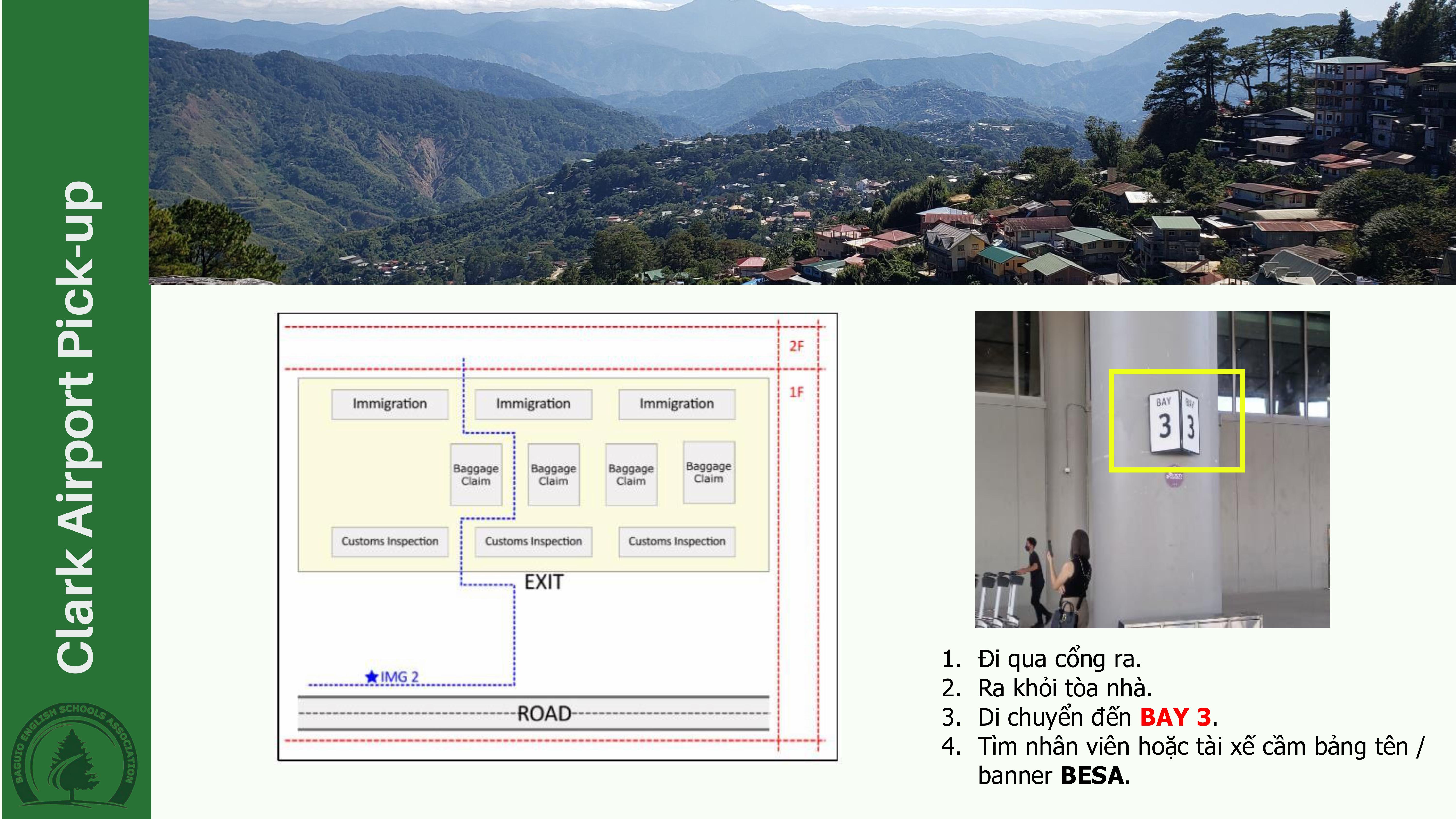 - Sau khi gặp nhau tại thời gian quy định ở Sân bay Clark, học viên sẽ đi thẳng đến học viện của mình