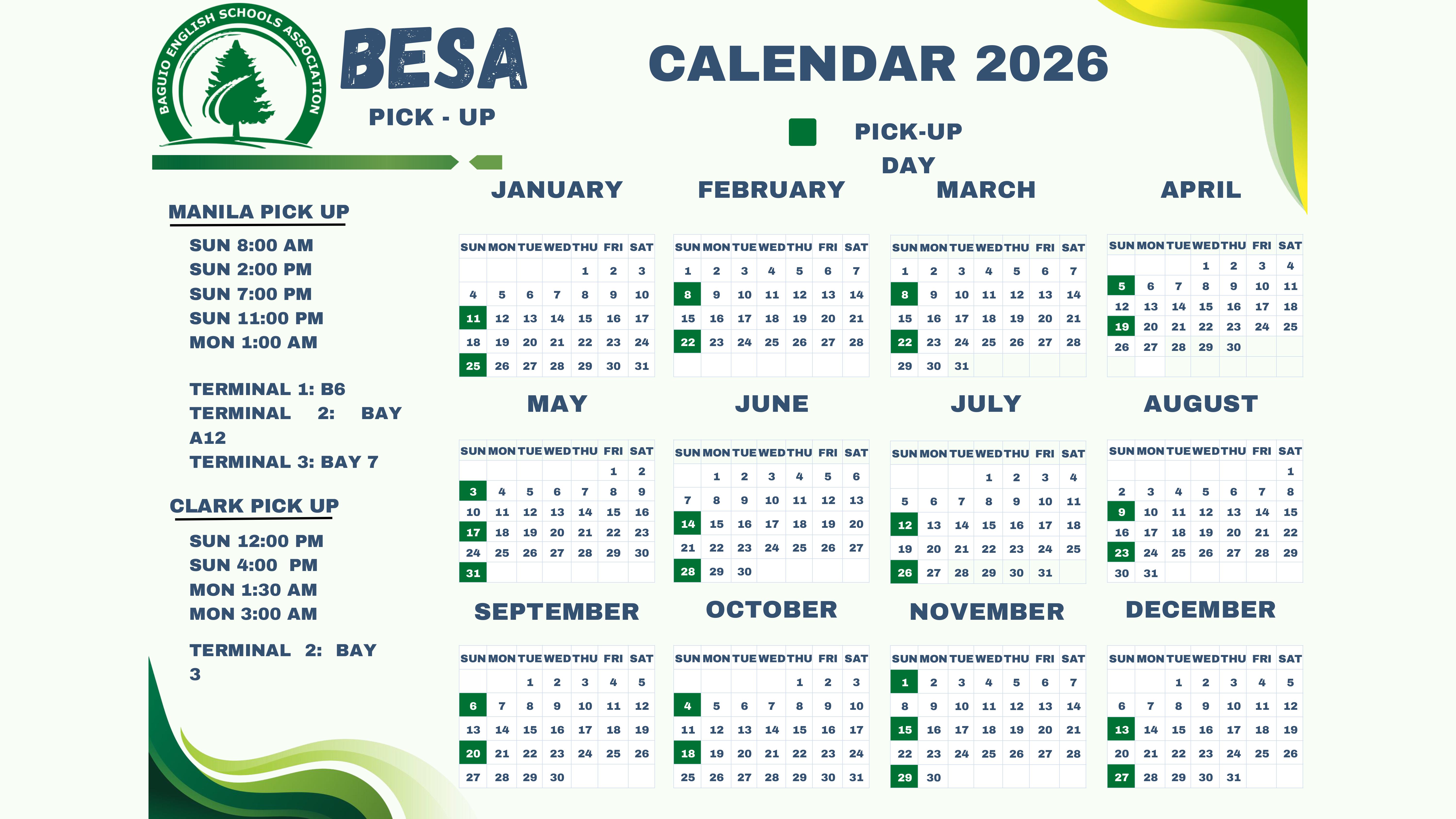 Lịch Đưa Đón Của Hiệp Hội BESA Năm 2026