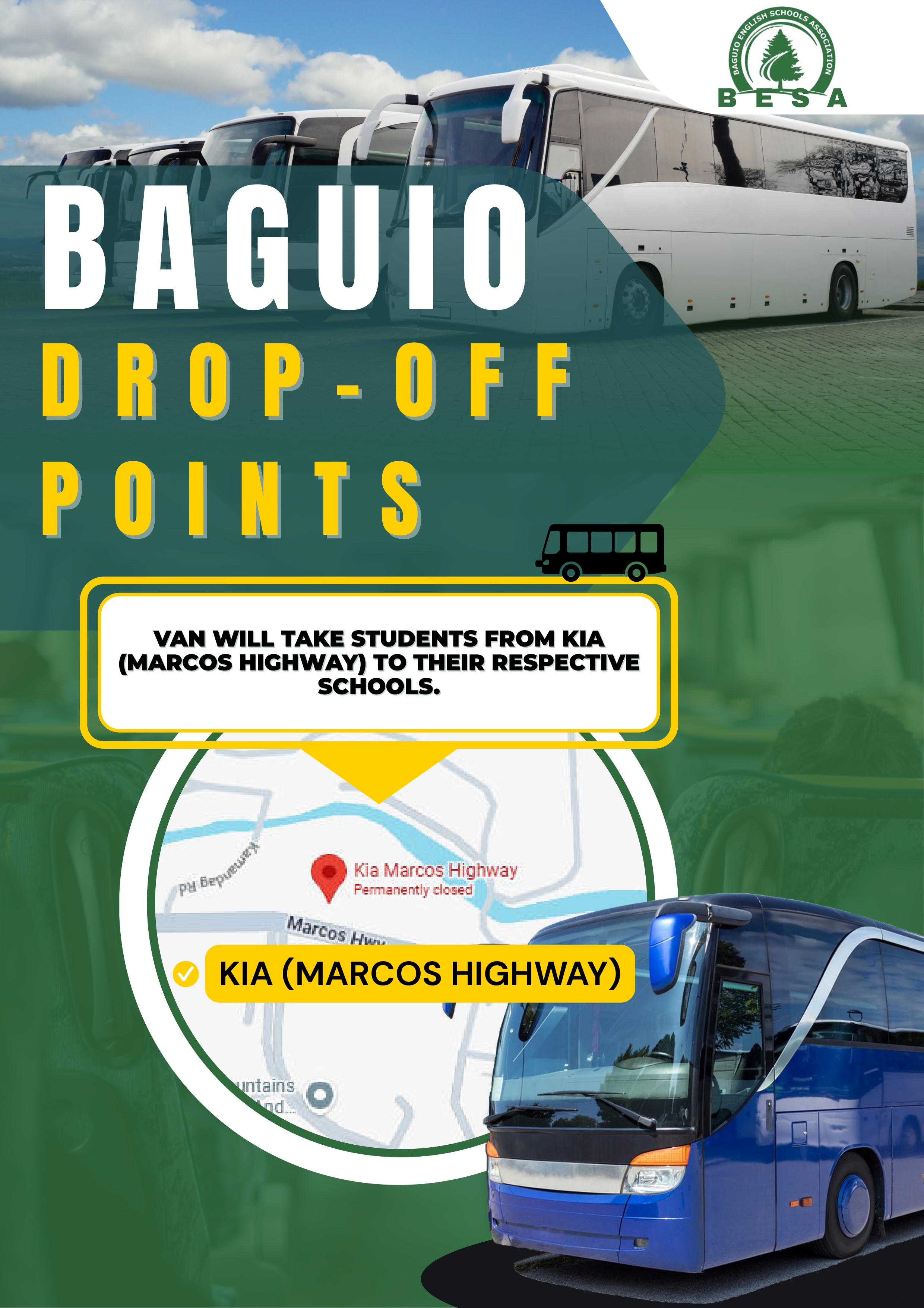 Xe van sẽ đưa học sinh từ Kia (Đường cao tốc Marcos) đến trường của học viên
