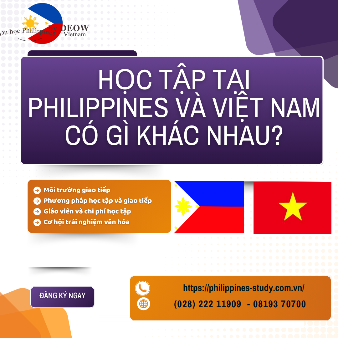 Trong bối cảnh hội nhập quốc tế như hiện nay, việc học tiếng Anh ngày càng trở nên quan trọng đối với học sinh, sinh viên và người đi làm. Trong số nhiều lựa chọn hiện nay thì có hai lựa chọn phổ biến nhất là học trong nước (tại Việt Nam) và du học tiếng Anh tại Philippines. Mỗi môi trường đều có những điểm khác biệt cũng như điểm tương đồng với nhau. Hãy cùng DEOW tìm hiểu nhé!