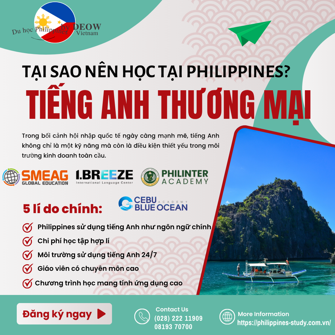 Trong bối cảnh hội nhập quốc tế ngày càng mạnh mẽ, tiếng Anh không chỉ là một kỹ năng mà còn là điều kiện thiết yếu trong môi trường kinh doanh toàn cầu. Đặc biệt, tiếng Anh thương mại đang trở thành lựa chọn ưu tiên của nhiều bạn trẻ và người đi làm hiện nay. Trong số các quốc gia đào tạo tiếng Anh, Philippines nổi lên như một điểm đến phù hợp. Vậy vì sao nên học tiếng Anh thương mại tại đây? Hãy cùng DEOW tìm hiểu nhé!