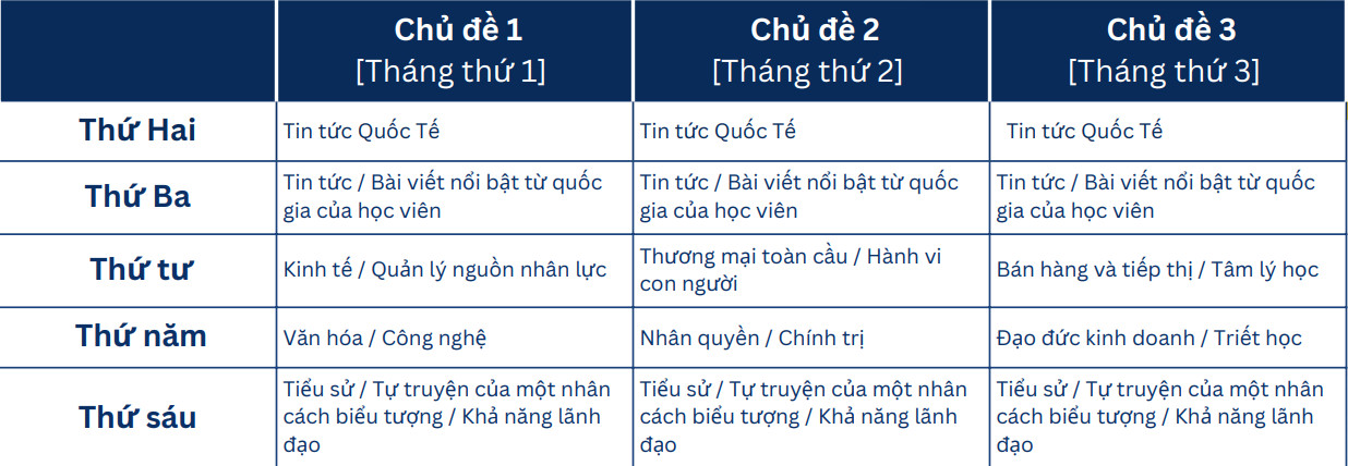 - The Executives’ Current Events Digest (1:1 Lớp Thảo Luận)