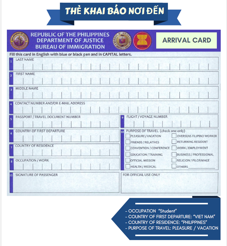 🌟 Thẻ khai báo nơi đến (ARRIVAL CARD)