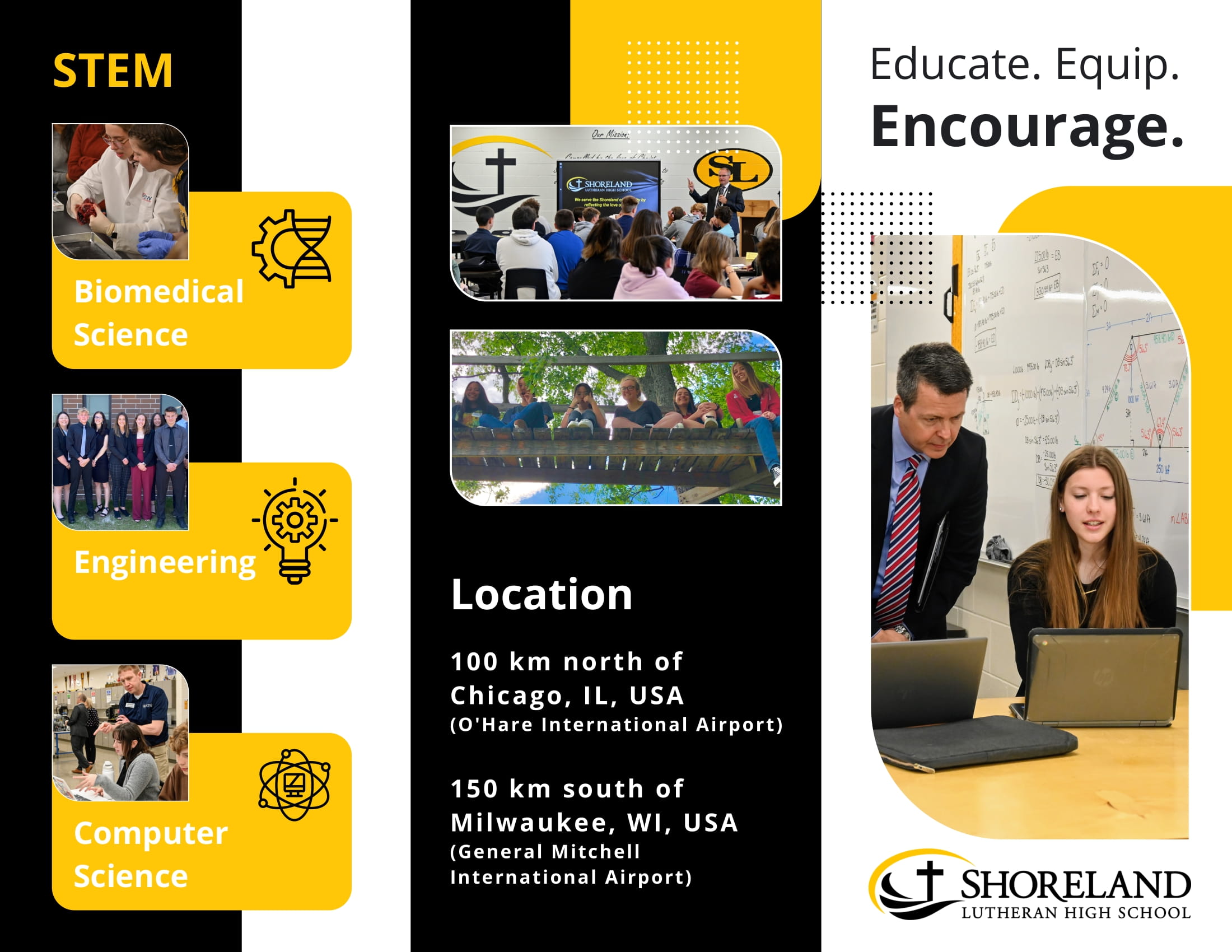 Shoreland cách khu công nghiệp lớn nhất Hoa Kỳ 3,2 km về phía nam là Tập đoàn Công nghệ Foxconn (Hon Hai Precision Industry Co.); nhà sản xuất điện tử theo hợp đồng lớn nhất thế giới. Shoreland Lutheran High School cam kết cung cấp nền giáo dục tốt nhất cho tất cả học sinh. Kể từ năm 1971, chúng tôi đã tận tâm duy trì các tiêu chuẩn cao và danh tiếng xuất sắc trong cộng đồng. Chúng tôi liên tục đánh giá mọi khía cạnh của trường mình, đạt kiểm định Chứng nhận Trường học của WELS và Hội đồng Quốc gia về Chứng nhận Trường Tư thục.