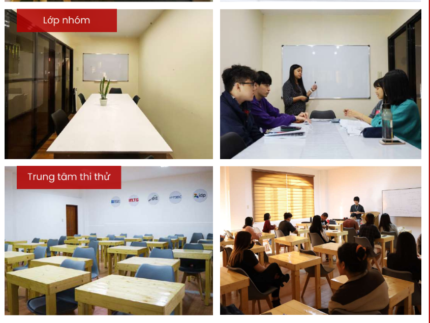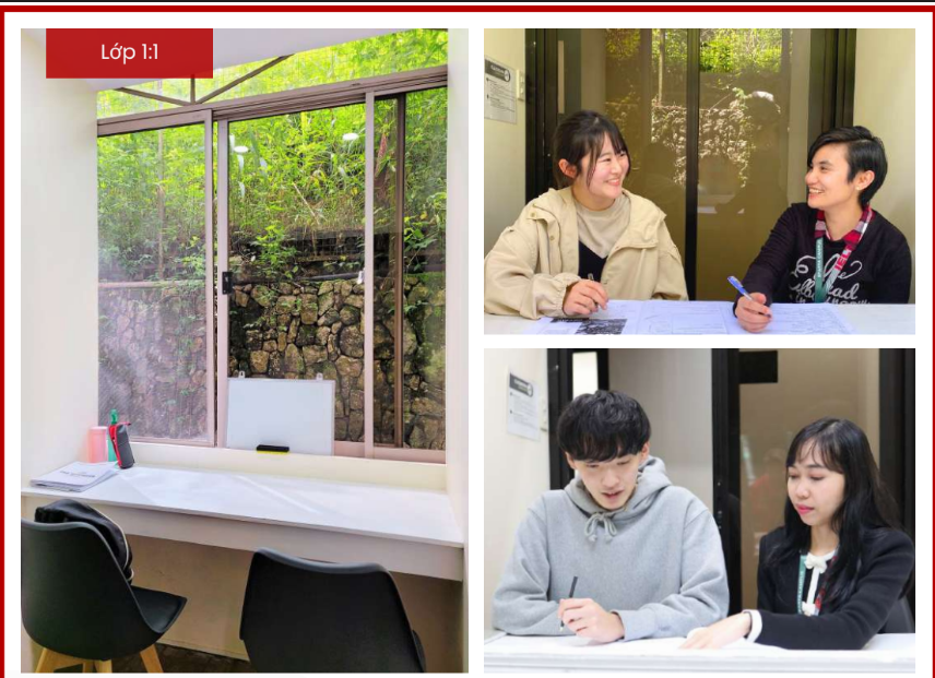 - TOEIC: khóa học phổ biến cho những ai đang muốn tham gia kì thi Toeic. Ngoài các lớp học về ngữ pháp, từ vựng, học viên sẽ được tham gia các bài kiểm tra và thi thử để quen thuộc với cấu trúc làm một bài thi Toeic. Phù hợp với nhiều đối tượng khác nhau như học viên muốn bắt đầu học về Toeic hay học viên muốn nâng cao điểm số bài thi Toeic của mình (4 lớp 1:1, 2 lớp nhóm, 3 lớp tối).