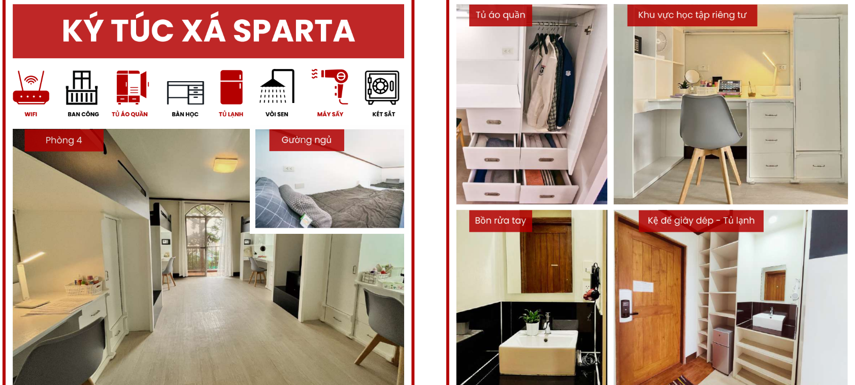 SPARTA CAMPUS chuyên về chương trình dạy cường độ cao đối với các khóa ESL/IELTS/TOEIC. Có đào tạo khóa 24ESL chuyên về giao tiếp cấp tốc ESL với 10 lớp học mỗi ngày. Mô hình ký túc xá 3+1 (3 học viên thuộc các quốc tịch khác nhau ở cùng 1 giáo viên người Philippines). Được xây dựng dựa trên tiêu chí học tập kỉ luật, hiệu quả để đạt được mục tiêu nhất định. Khuôn viên trường có sức chứa 80 học viên, mô hình đào tạo Sparta sẽ giúp học viên tiếp xúc liên tục với tiếng Anh 24/7 làm tăng khả năng nghe, nói của học viên. Cơ sở vật chất và ký túc xá hiện đại sẽ đem lại không gian học thuật tốt nhất dành cho sinh viên quốc tế theo học tại đây.