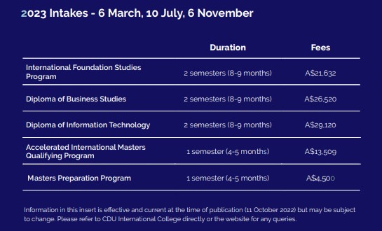• Applicant must apply to commence study in 2023 for a pathway course with CDU International College