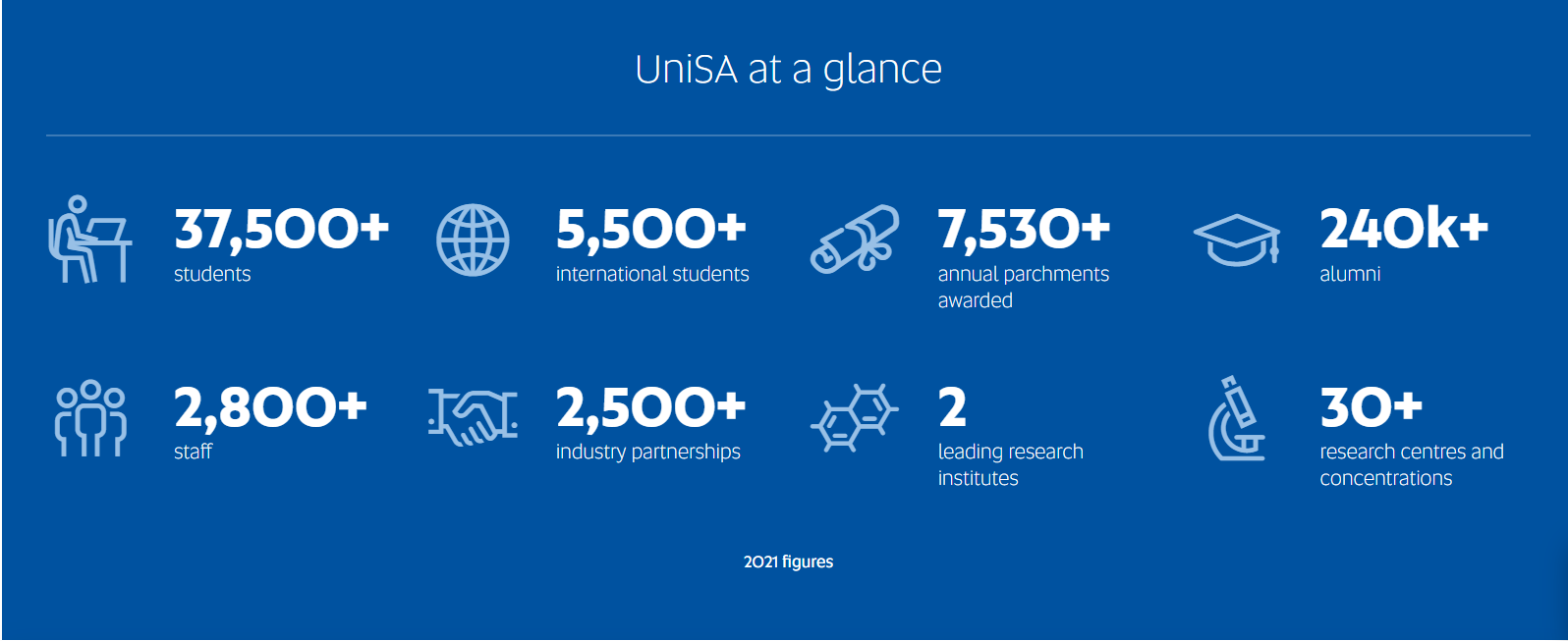 University Of South Australia là Đại học Doanh nghiệp của Úc trên trường toàn cầu, nhanh nhẹn và sắc sảo, được biết đến với sự phù hợp, công bằng và xuất sắc. |