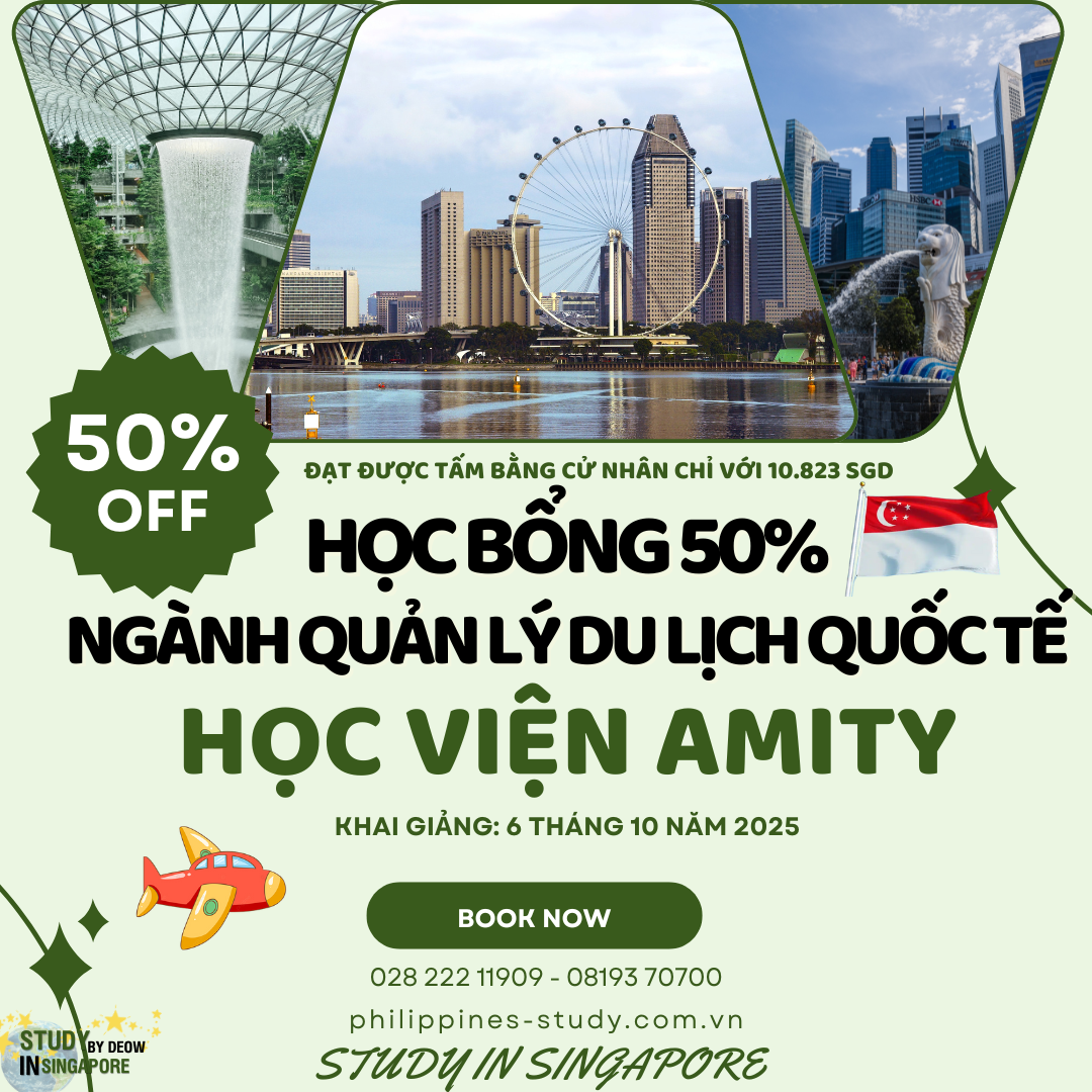 Học Bổng 50% Chuyên Ngành Quản Lý Du Lịch Quốc Tế - Học Viện AMITY Singapore