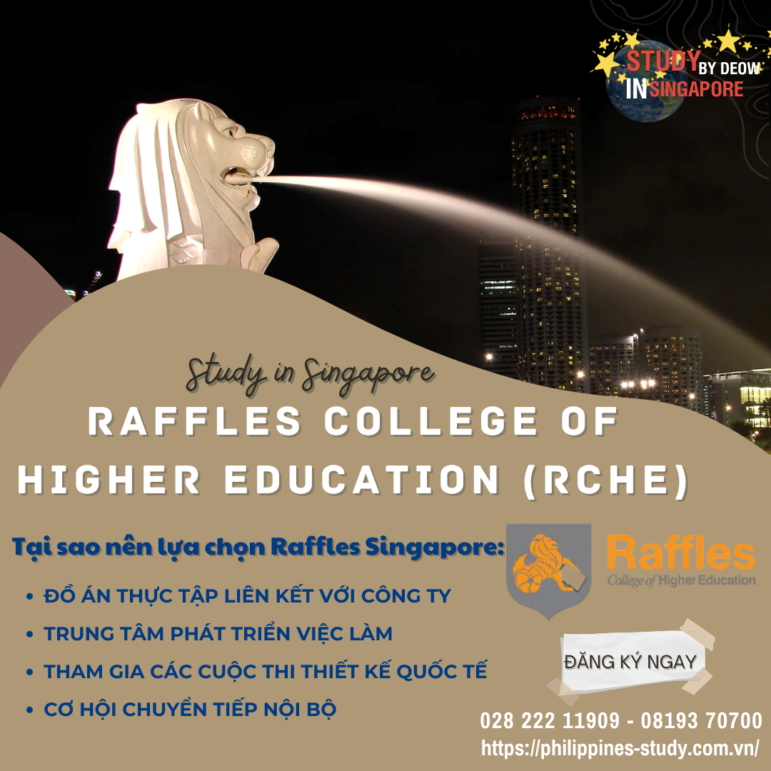 Trường Raffles College of Higher Education Singapore (Raffles Singapore – RCHE) thuộc Tập đoàn giáo dục Raffles – tập đoàn giáo dục nổi tiếng tại Singapore và Úc. Trường đào tạo đa dạng các chuyên ngành liên quan đến thiết kế và sáng tạo. Khi đến với Raffles Singapore sinh viên sẽ được trải nghiệm môi trường đào tạo cao, sơ cở vật chất hiện đại cùng nhiều điểm nổi bật mà chỉ có tại Raffles.