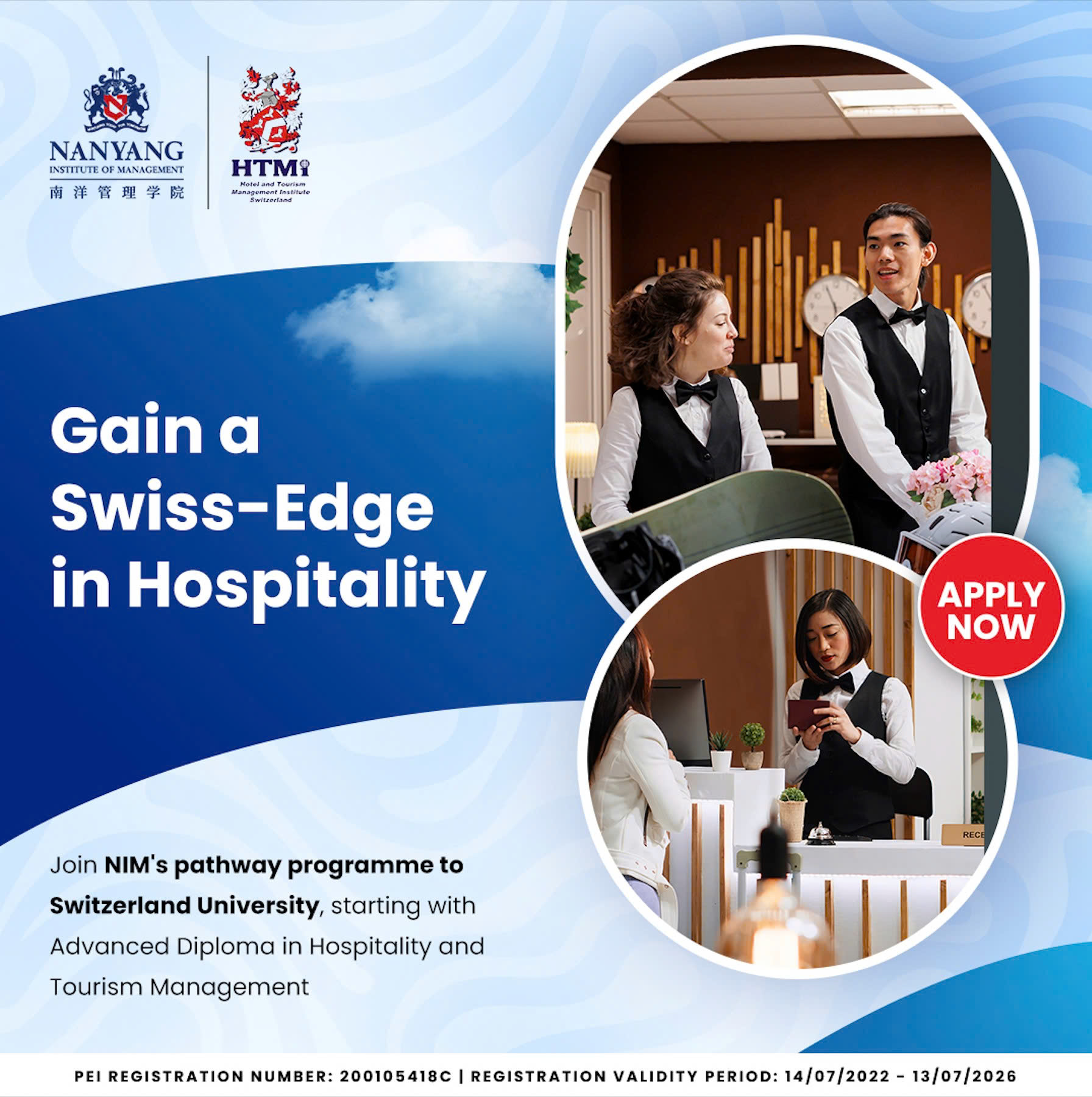 Những sinh viên muốn nâng cao trình độ trong ngành Quản lý Khách sạn và mở rộng cơ hội nghề nghiệp toàn cầu sang ngành này thì đừng bỏ lỡ Chương trình Thạc sĩ Quản lý Khách sạn Quốc tế tại NIM Singapore. Sau khi hoàn thành chương trình học, sinh viên sẽ được cấp bằng từ Trường Đại học Canterbury Christ Church (UK). NIM tạo điều kiện cho học viên học tập tại Singapore với mức chi phí hợp lý nhưng vẫn nhận được tấm bằng danh giá đến từ UK.
