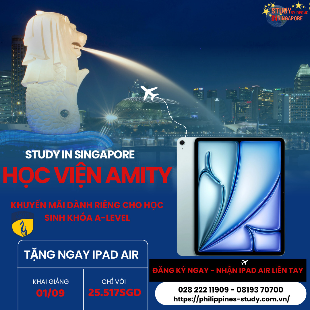 Thông tin tuyển sinh mới nhất về chương trình Cambridge A-Level (Intensive Mode) tại Amity Global Institute – Singapore, dành cho học sinh mong muốn hoàn thành chương trình trung học quốc tế, nhanh chóng bước vào đại học và có cơ hội xin Thường trú nhân (PR) Singapore.