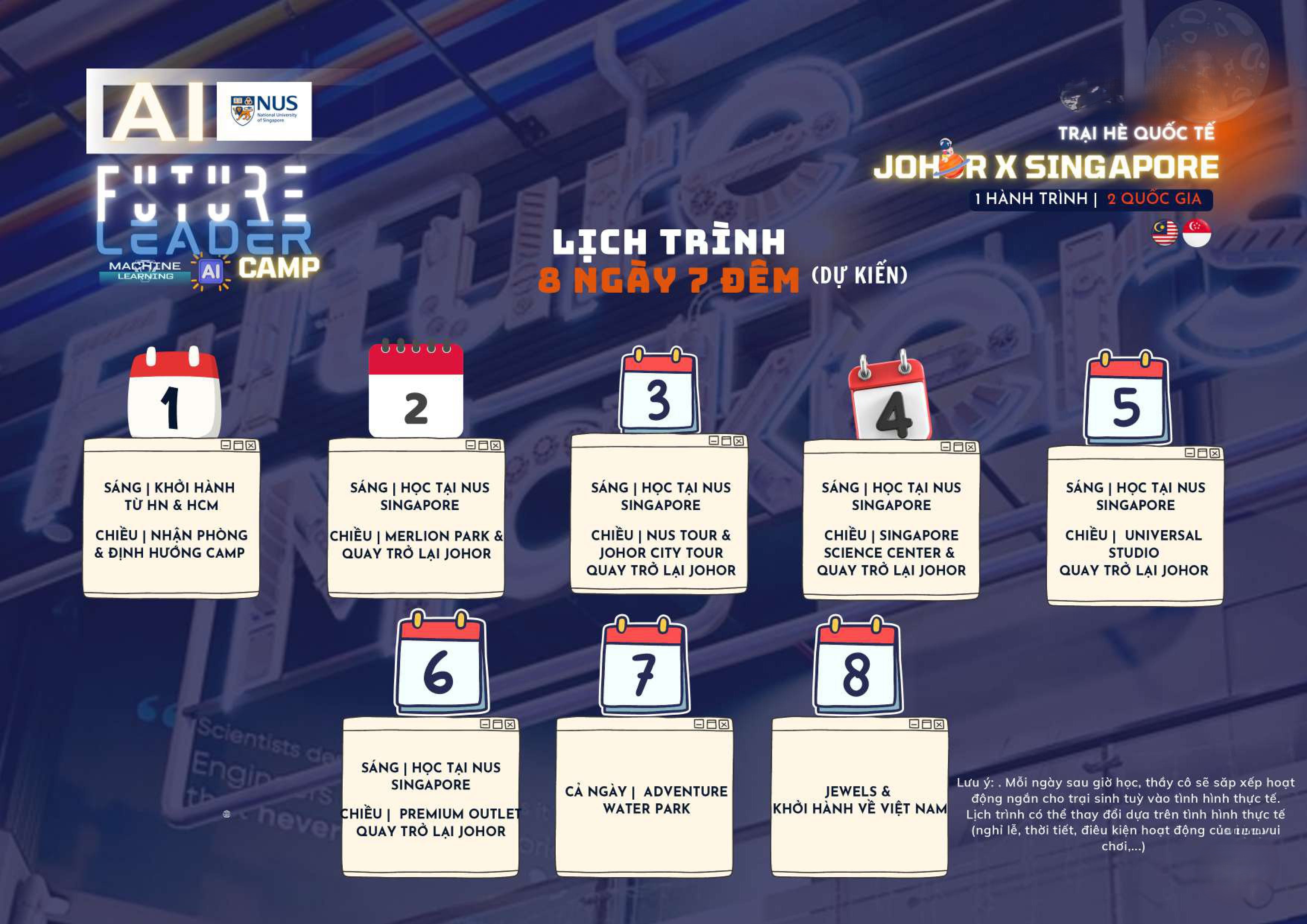 - V. CHƯƠNG TRÌNH HỌC TẬP TẠI TRẠI HÈ JOHOR SINGAPORE 2026 – AI NUS CAMP – FUTURE LEADERS CAMP