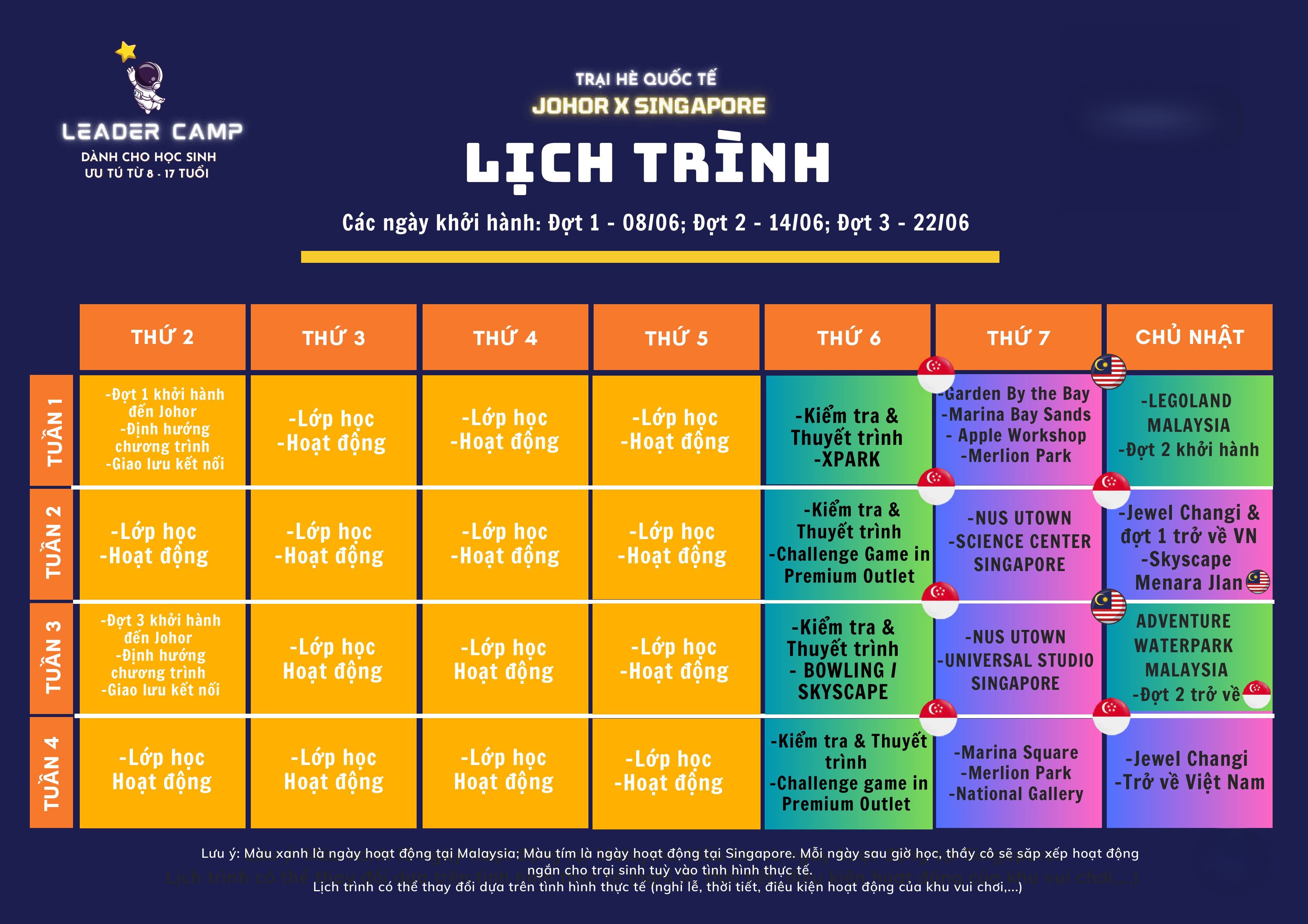 Lưu ý: Lịch trình có thể thay đổi tùy theo điều kiện thời tiết tại Malaysia và Singapore