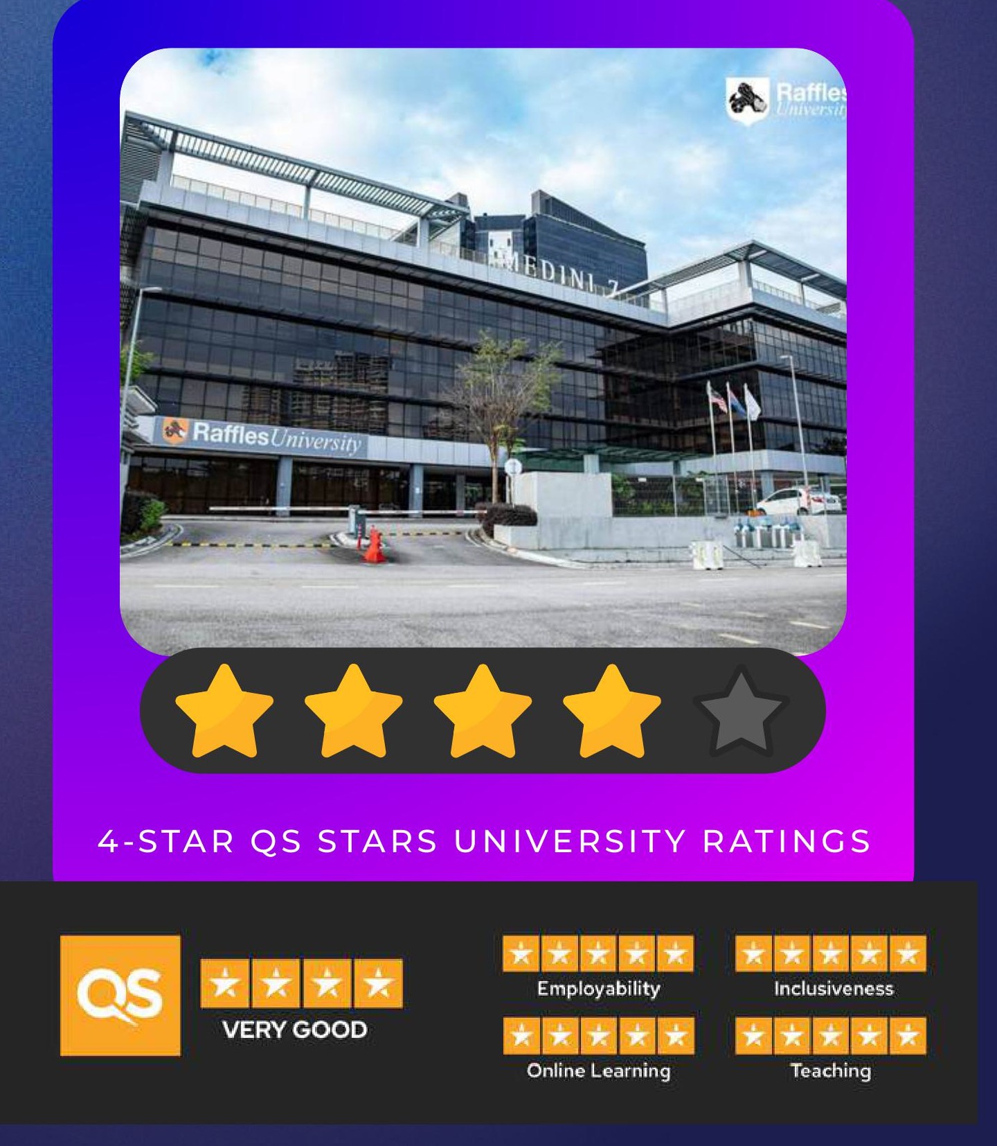 Raffles University là trường đại học quốc tế thuộc hệ thống Raffles Education, nổi tiếng với các ngành AI & Robotics, Data Science, Multimedia Design, Fashion Design và Business. Trường đạt 4-Star QS Stars University Ratings, khẳng định chất lượng đào tạo và môi trường học tập chuẩn quốc tế.