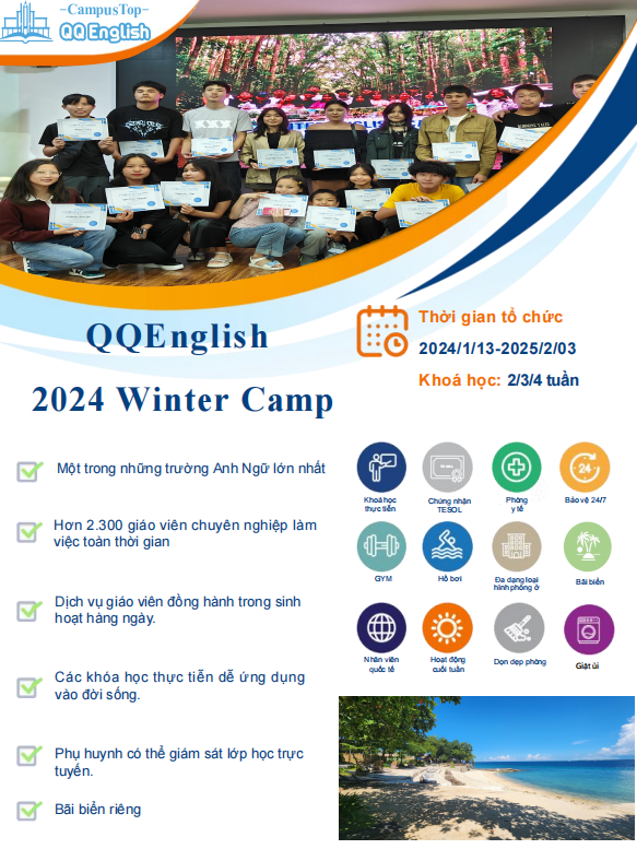 Đối tượng: Học sinh 10-17 tuổi. Ngày bắt đầu: 12/1; 19/1; 26/1; 2/2. Học viên có thể đăng ký 2 tuần - 3 tuần - 4 tuần