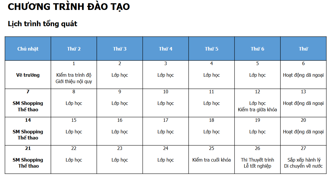 *Lịch trình có thể được thay đổi bởi nhà trường.
