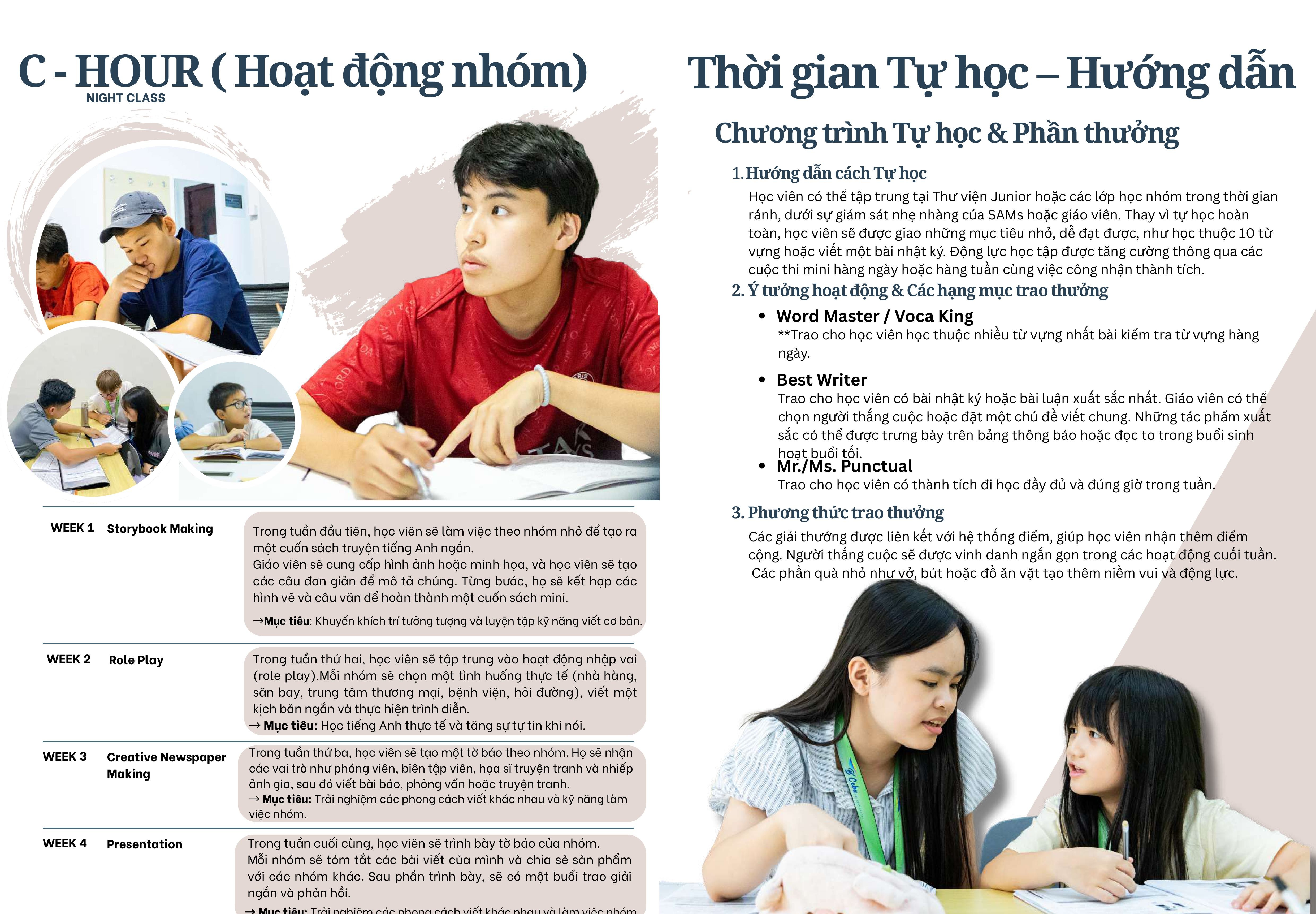 Hệ thống SAMs (Student Assistant Mentors): Đồng hành, hỗ trợ học viên 24/7, giúp các em hòa nhập nhanh chóng.
